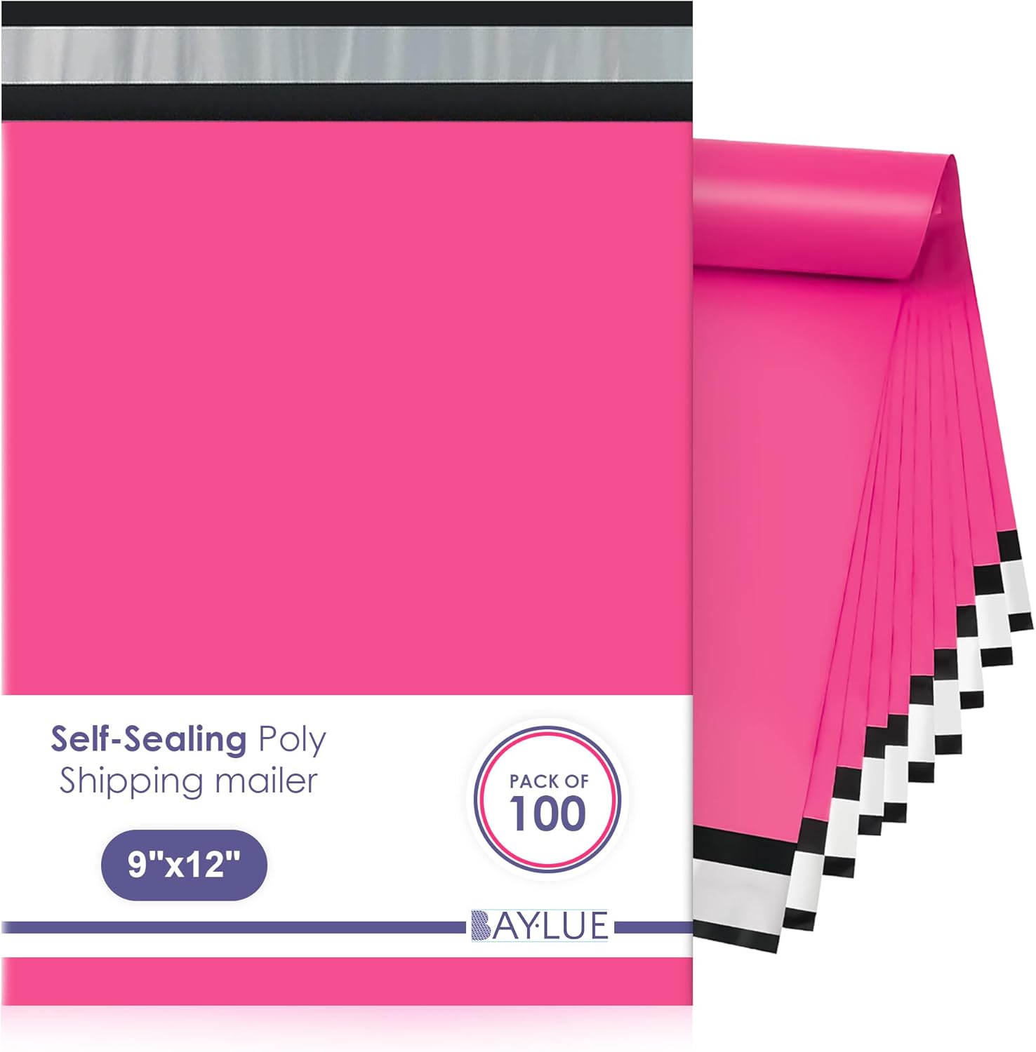 Hot Pink Poly Mailers 9x12 Inch | Strong Adhesive Self-Seal mailer Bags | Tamper, Tear, Water Resistant Shipping Envelopes | Thick Strong Material Polymailer Bags Clothing Bag | 1000 Pack Bulk