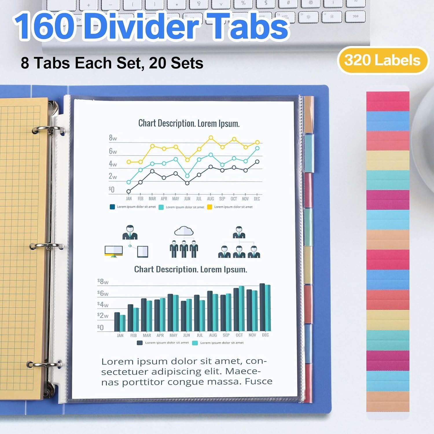 - Package List: the package comes with 20 sets of 160 pcs of sheet protectors for 3 ring binder, each set contains 8 pcs of sheet protectors with 8 different colors tabs, you can easily organize files and quickly find what you need with these 3 ring binder dividers, sufficient quantity offers you ample organization options for your documents