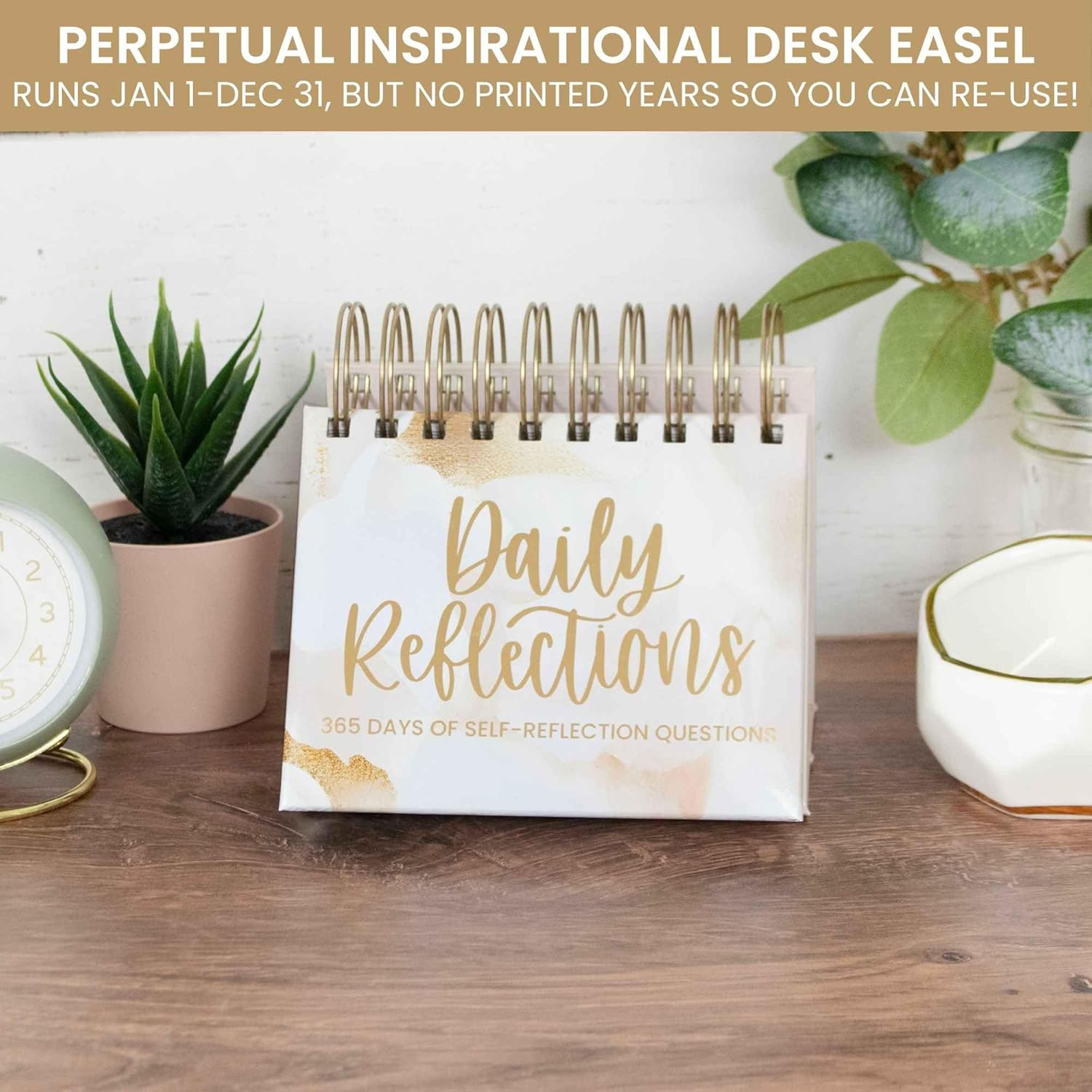bloom daily planners Undated Perpetual Desk Easel - Motivational Inspirational Standing Flip Calendar - Page a Day (5.25" x 5.5") - Daily Mindfulness Reflection Questions