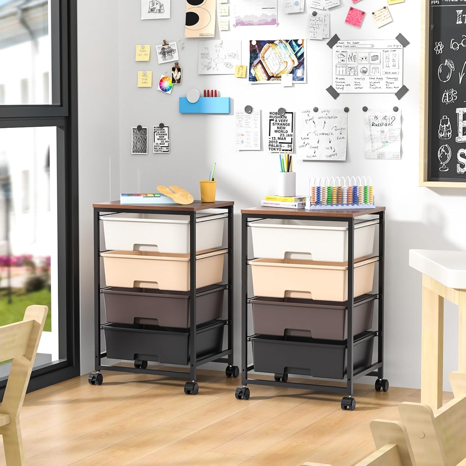 - MULTI-FUNCTIONAL ROLLING DRAWER CART: This storage drawer cart can perfectly place its practical role in livingroom,office,study,school,classroom,dorm,craft room,art studios,garage,bathroom,or dressing room for organizing files,sewing,quilting supplies,sundries,wash supplies,cosmetics,painting tools,art supplies,files,magazines and newspapers,toiletries.