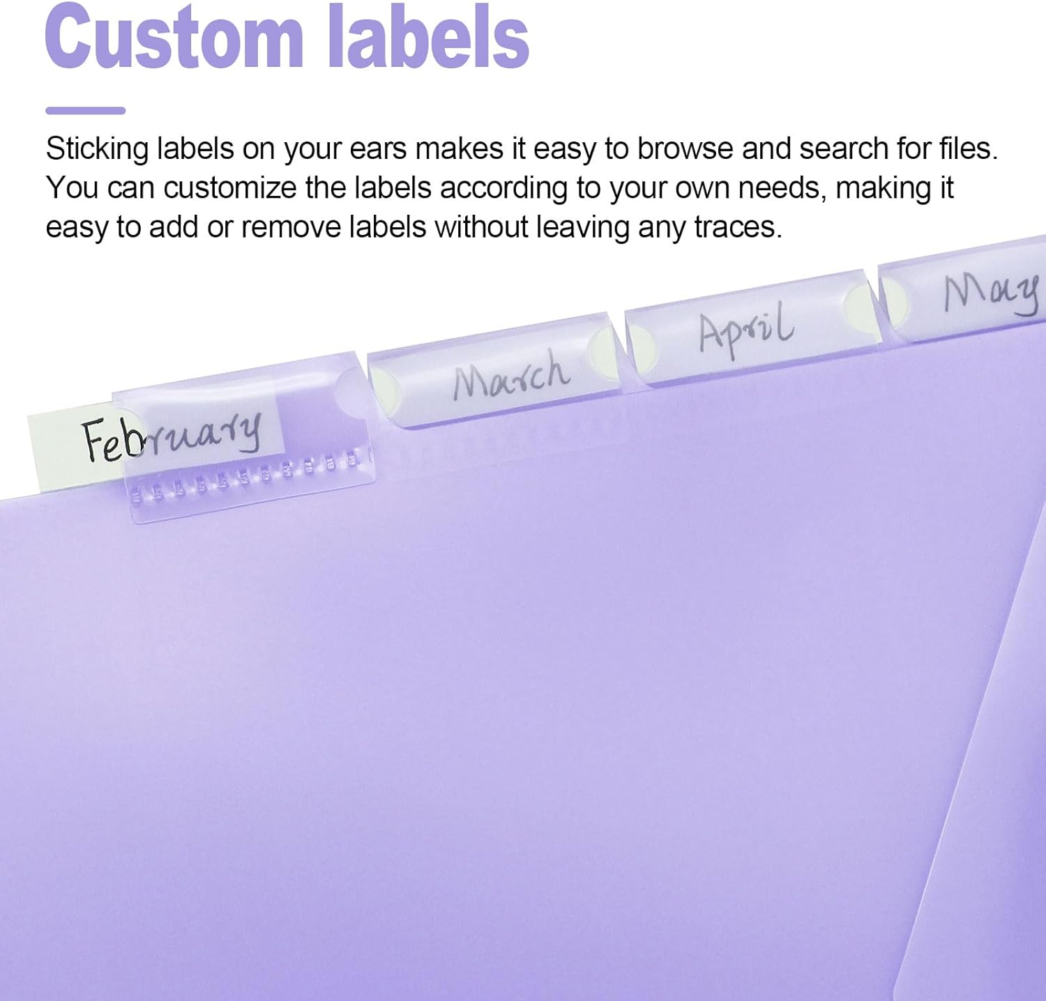 - 【1/8-Cut Tabs for Quick Access】Our Plastic Dividers with Translucent Front Pocket feature 1/8-cut tabs that are easy to label with stickers, making it simple to visually differentiate between subjects or topics within a binder.