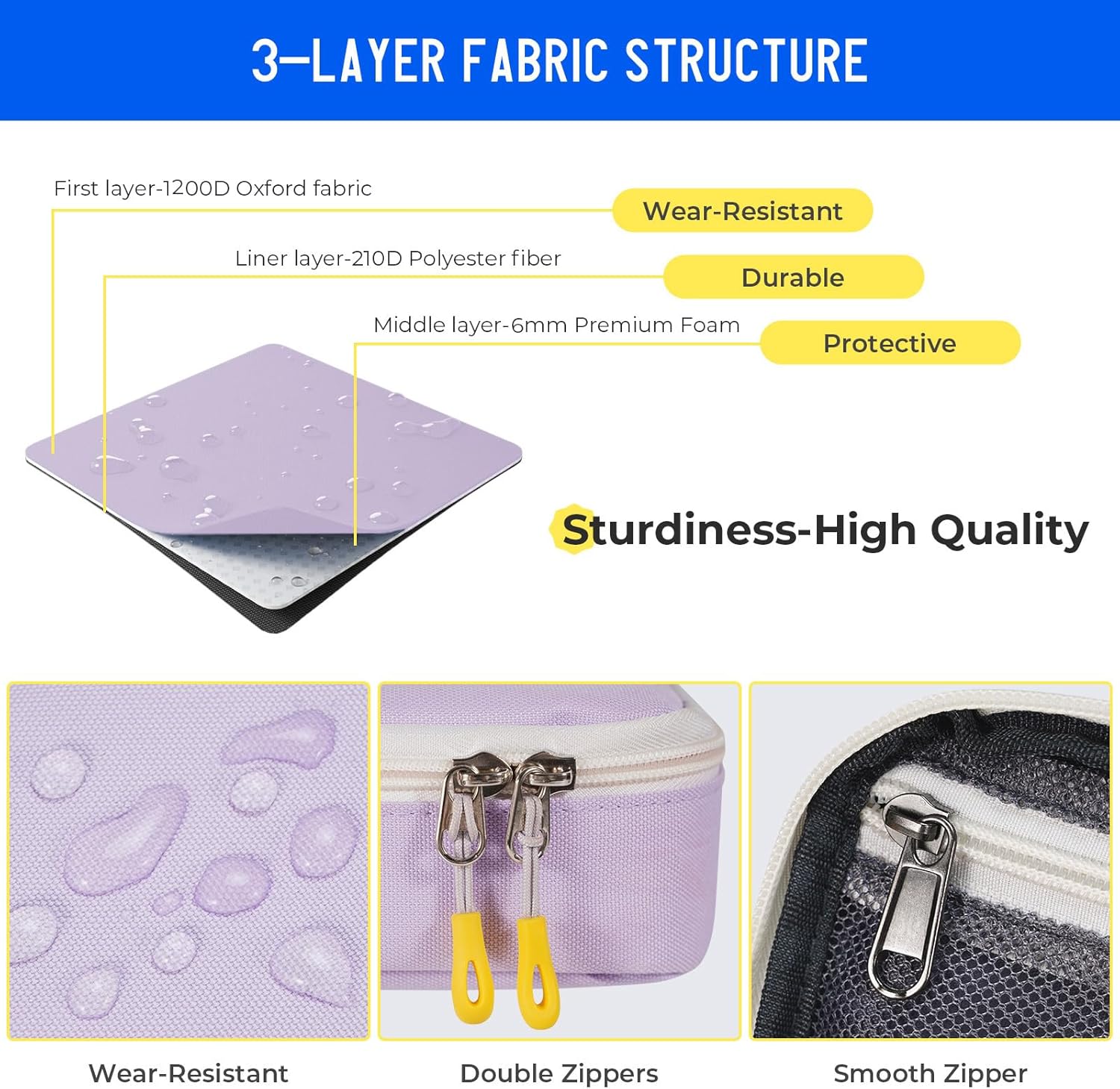 - PREMIUM MATERIAL: Pencil Bag has an upgraded 3 layer fabric structure. The exterior is made of high quality 1200D Oxford fabric, which is comfortable, water resistant, impermeable, scratch, and hard wearing. The interior is 6mm foam padded to provide softer support and more protection for your essentials. Double zips with silicone sliders for smooth operation and easy grip
