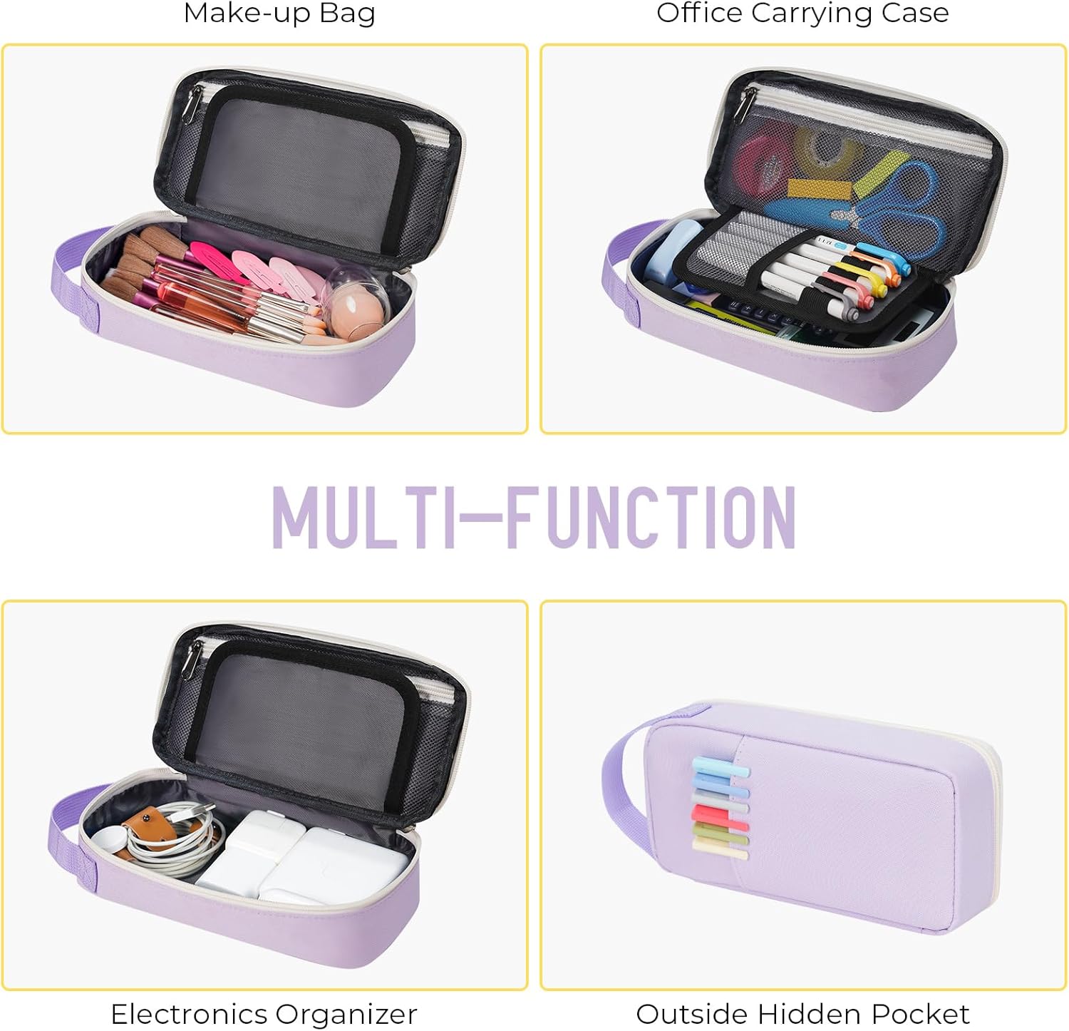 ECHSRT Big Pencil Case, Aesthetic Portable Zipper Pencil Bag with Hidden Pocket, Special Pouch for Men Women Adults, Stationery Organizer Pen Cases for Office Travel, Light Purple