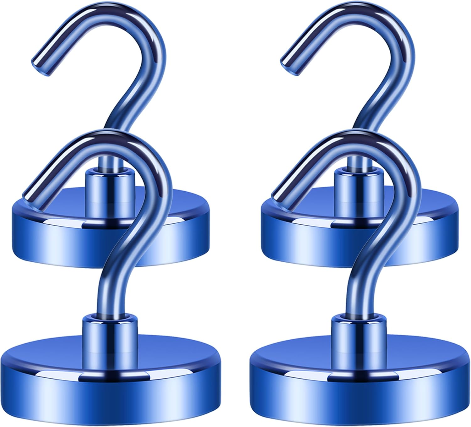 Neosmuk Magnetic Hooks Heavy Duty,Strong Magnet with Hook for Fridge, Super Neodymium Extra Strength Industrial Hooks for Hanging, Magnetic Hanger for Toolbox, Cruise, Grill(Navyblue,4 Pack)