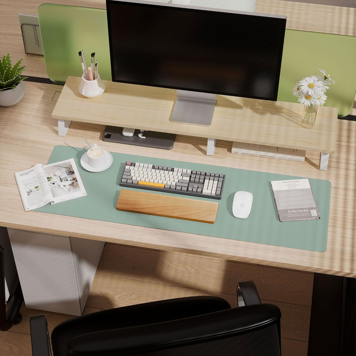 - Large Mouse Pad: Upgrade your workspace with our large desk pad, eliminating the need for an extra mouse pad. Transform your desk into a spacious and professional environment. The back side features a special suede design, significantly enhancing friction resistance with the desktop to prevent slipping. Experience a 70% increase in friction resistance compared to double-sided leather, ensuring a stable and secure workspace.