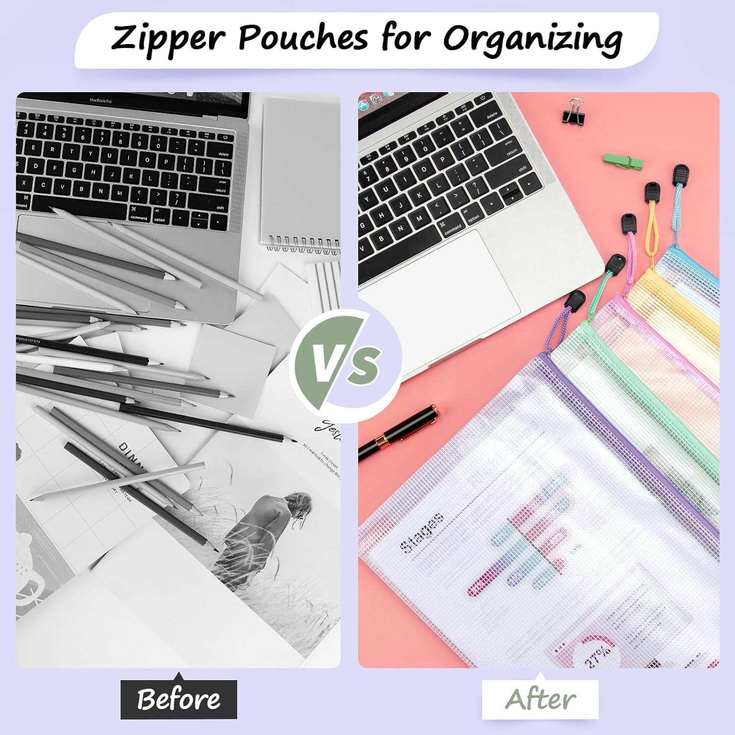 - 【MULTIPURPOSE APPLICATION】The mesh zipper pouch bags not only help organize documents and office supplies accurately and efficiently, but it is also great for organizing toys such as board games. It's also great for clothing and toiletry storage for travel trips