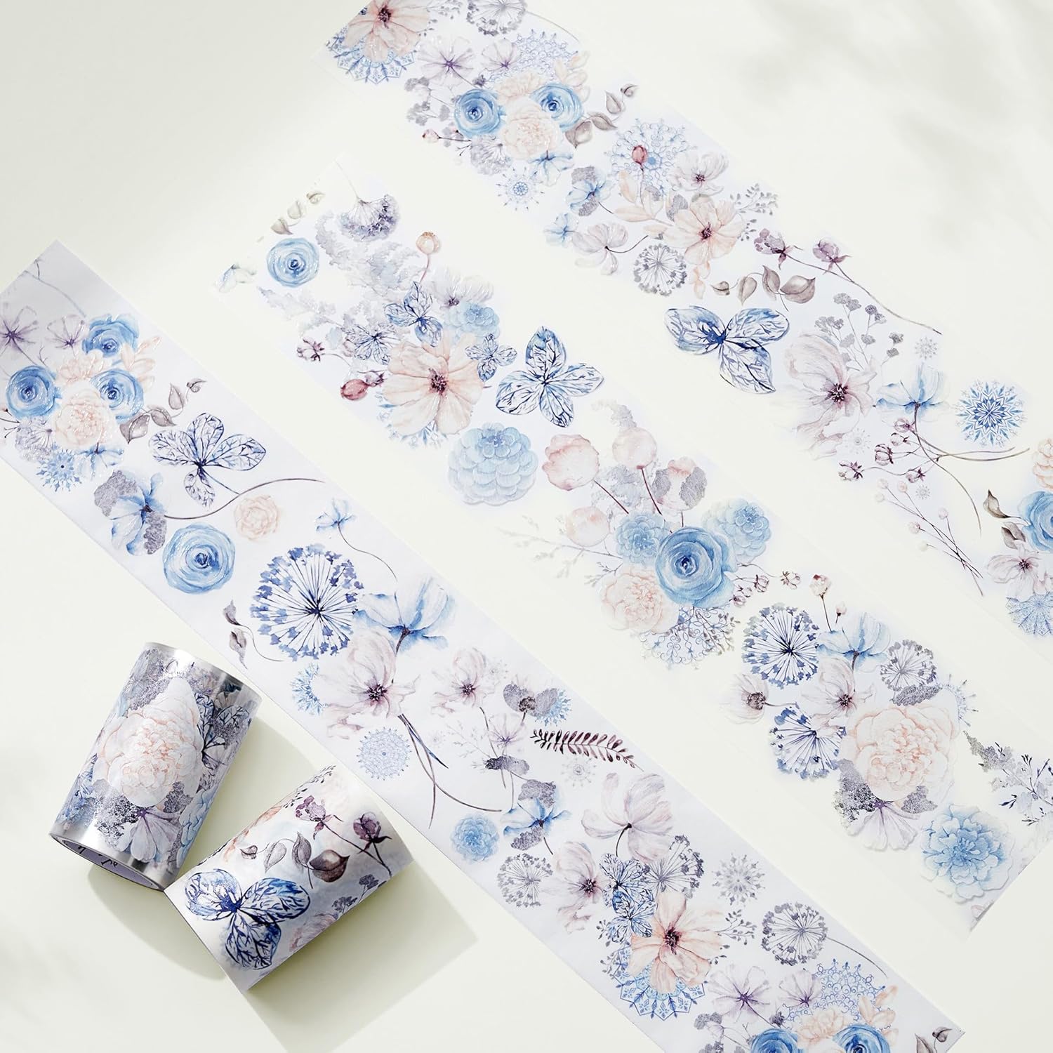 WT Frozen Wide Washi Tape, Single Roll, Original Designs, Pastel Vintage Floral Decorative Tape, Adhesive Paper Tape for Junk Journals, Scrapbooks, Bujo, Planners, DIY Crafts, Gift Supplies