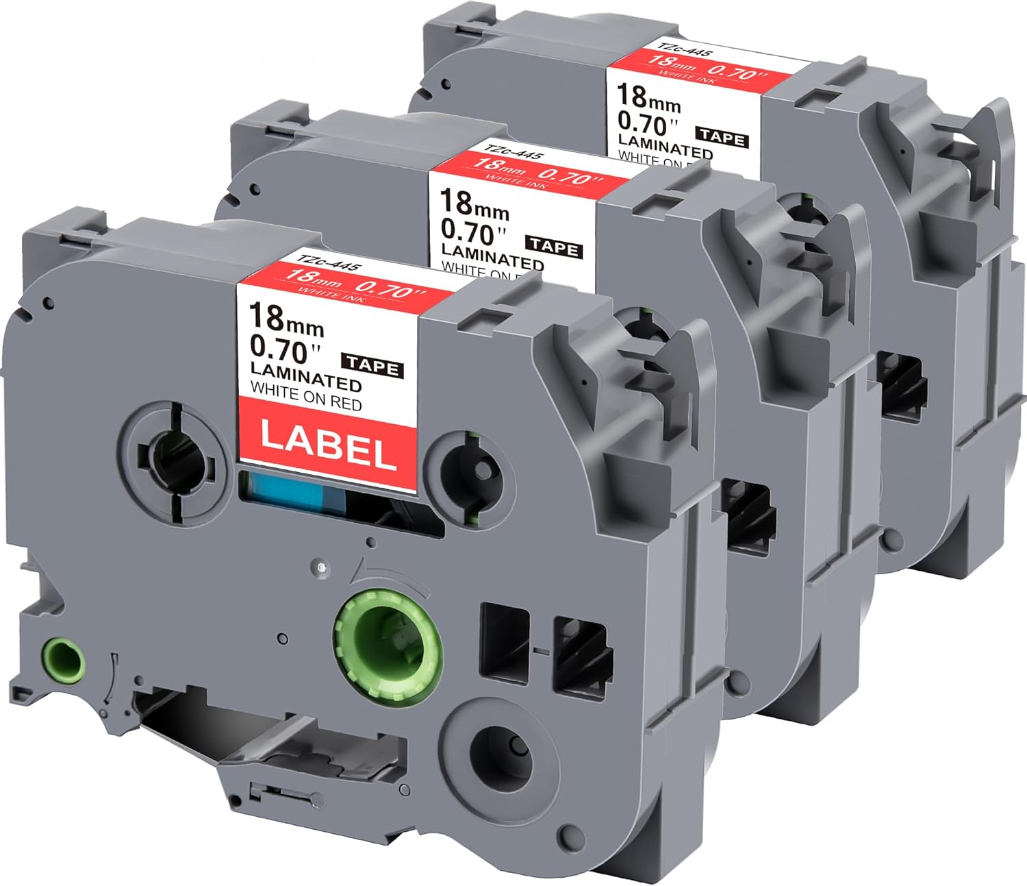 - Quantity/Size/Colour: TZe445 TZ-445 TZ445 TZe-445 Label Tape comes in packs of 3, is 0.7" (18mm) wide and 26.2 ft (8m) long and is white on red
