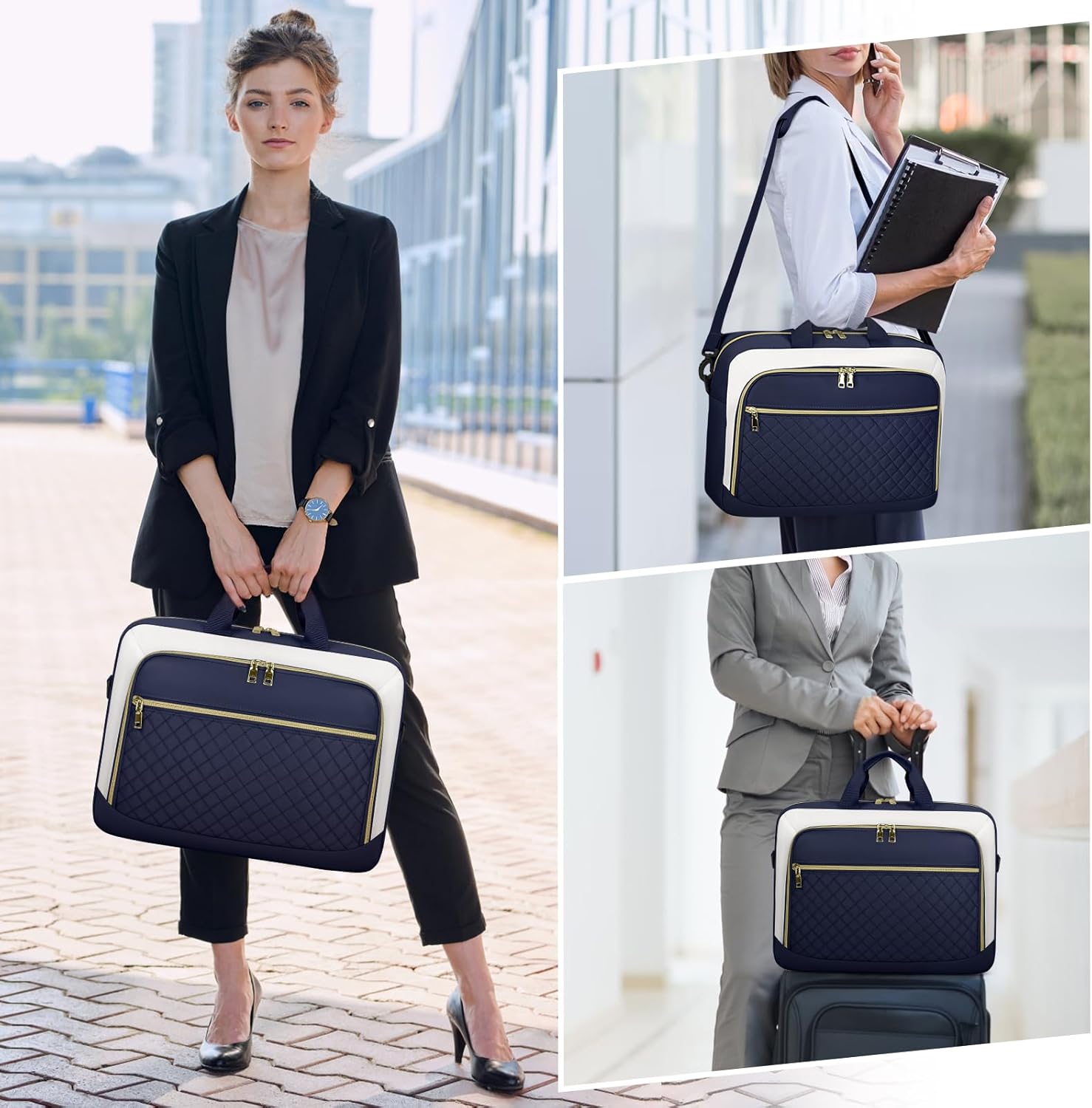 - 【Convenience & Comfortable Design】TSA friendly, separate tech compartment and large opening design allow you to quickly pass through the security check. The laptop bag for women features removable, adjustable padded shoulder strap that can adjust the length to fit different heights and reduce shoulder pressure. Sturdy PU handle to ensure comfortable carrying. Luggage strap allows the laptop messenger bag to slide over the luggage tube, freeing up your hands.