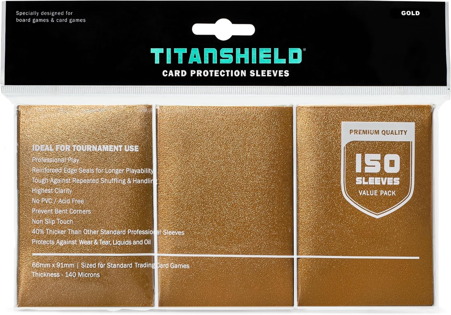 TitanShield Premium 150 Gold Sleeves Compatible with MTG Magic The Gathering, Lorcana, Board Games and Trading Cards 2.5" x 3.5" 66x91mm