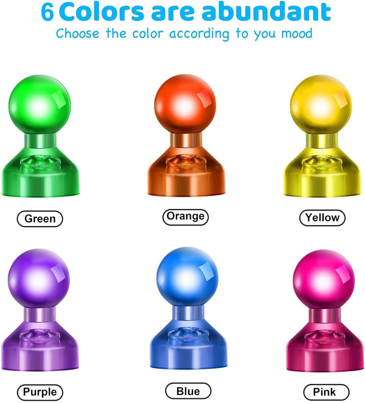60 PCS Colorful Strong Magnetic Push Pin Magnets, Office Classroom Magnets,6 Assorted Color, Perfect to use as Kitchen Home and School, Map Magnets,Whiteboard Magnets