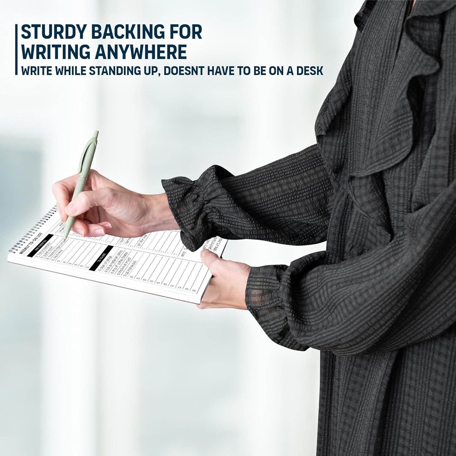 - Sturdy Backing for Writing Anywhere: Our notepad is made with a thick backing that provides a sturdy surface for writing anytime, so you can take it on the go and never miss an important task again. Whether you're at home, in the office, or on the go, you'll always be able to capture your thoughts and stay on top of your daily routine.