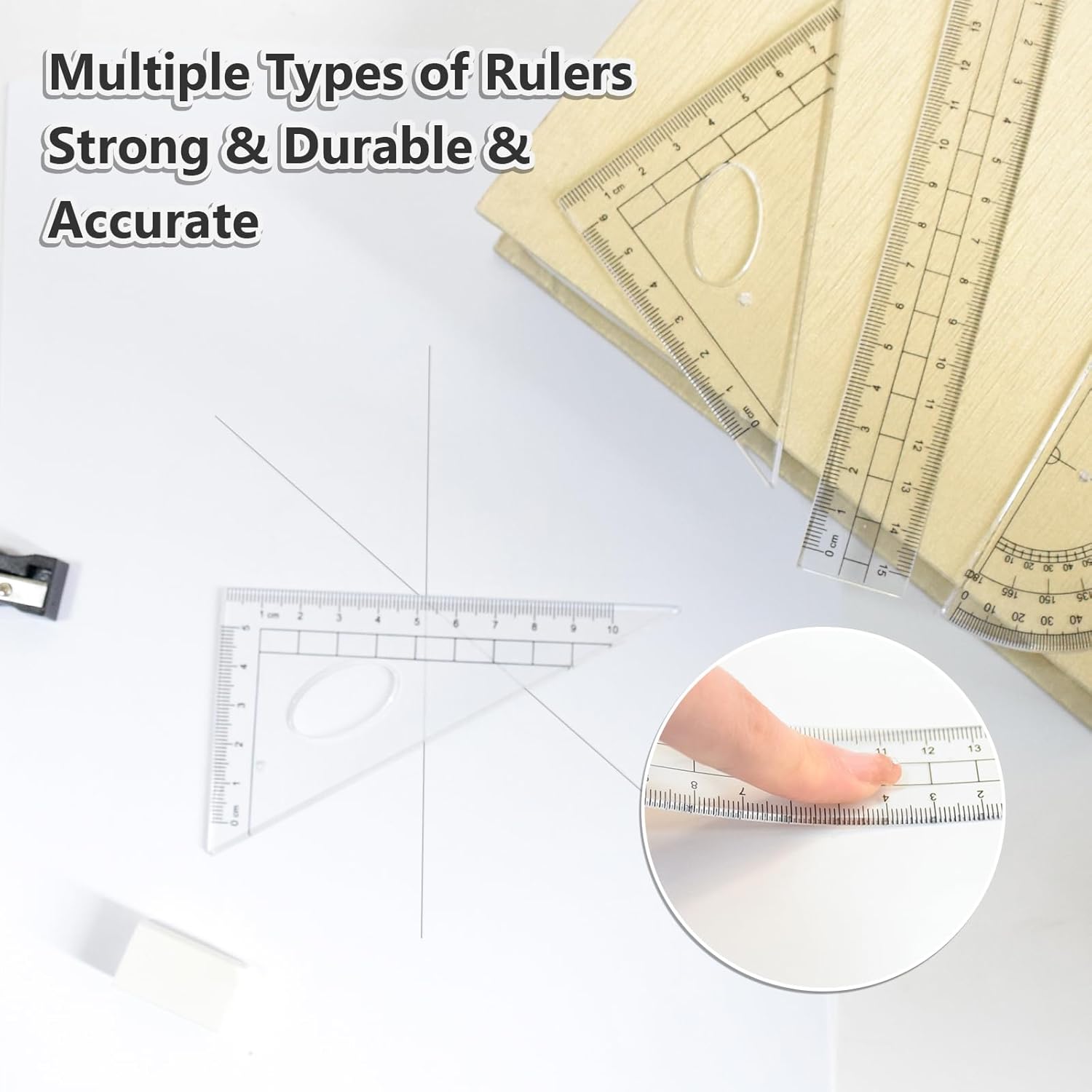 - PRODUCTS INCLUDING: 1 x universal compass which can hold pencil and other pens, 1 x commom stainless compass,1 x ruler,1 x protractor ,2 x Triangles,1 x eraser,1 x pencil sharpener,1 x pencil,1 x replaced refill