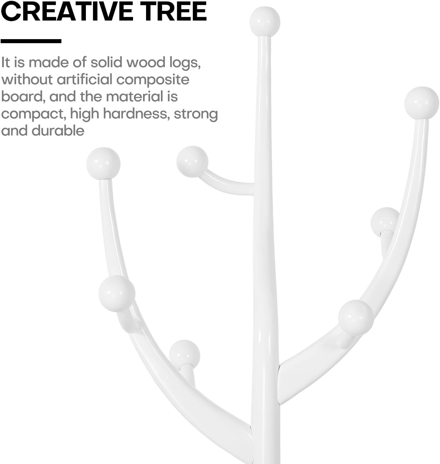 Coat Rack, Solid Wood Coat Racks Stand, Free Standing Coat Rack Coat Hanger with Hooks for Jaceket, Winter Coats, Entryway, Hallway, Bedroom - Load 160lbs (White)