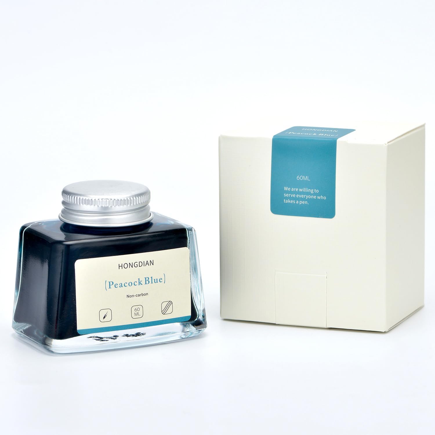 Hongdian Fountain Pen Bottled Ink Peacock Blue Color, 60ml Non Carbon Inkwell Bottle, Artist Calligraphy Ink