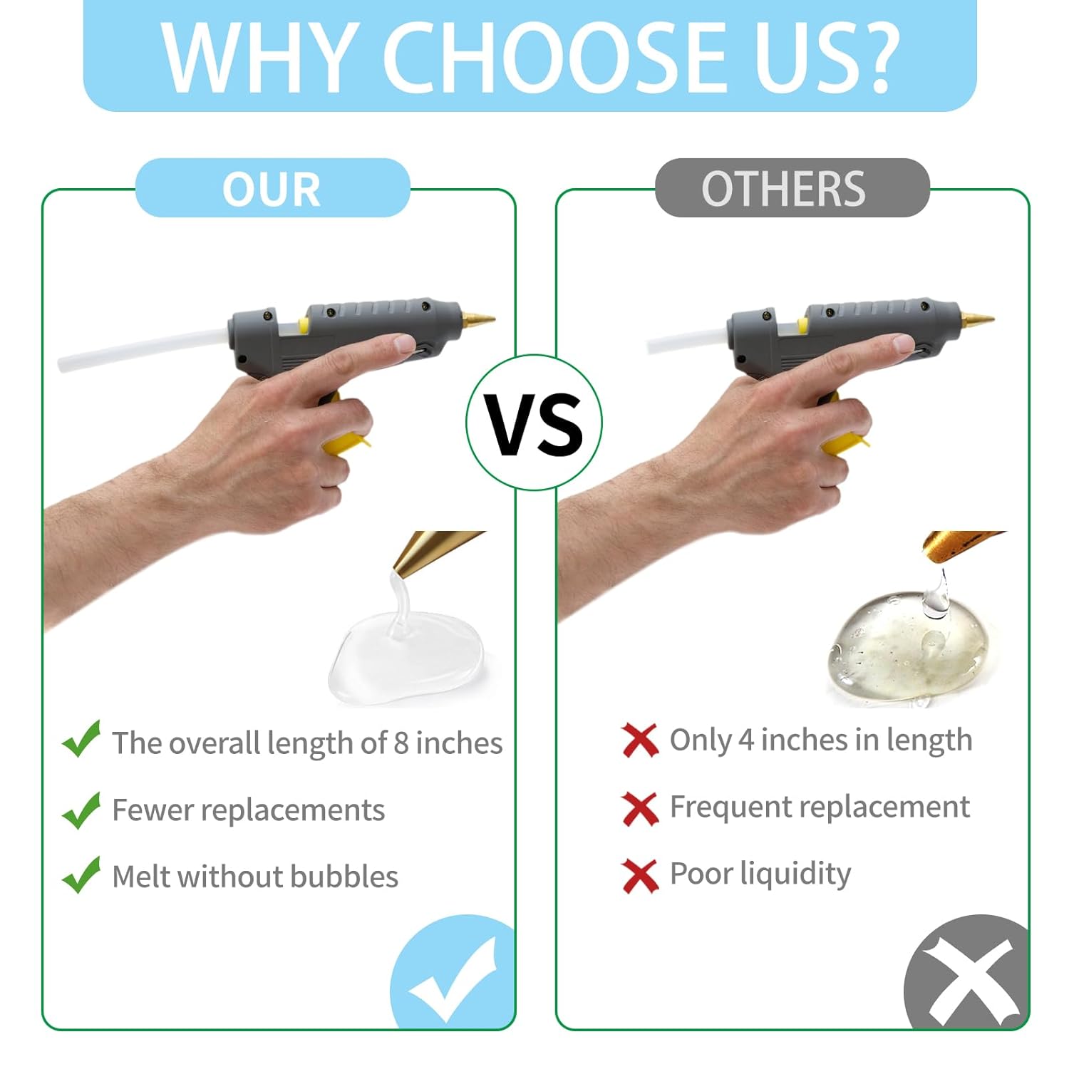 - TOUGH & FAST BONDING: Our hot glue gun sticks are made of clear EVA hot melt adhesive, which is tough, can cure quickly and stick firmly, and can be steadily stuck to almost any material within 30 seconds. Clear, transparent, and free of any impurities, mini hot glue sticks for glue gun are suitable for different surfaces and gap-filling applications, durable, and long-lasting!