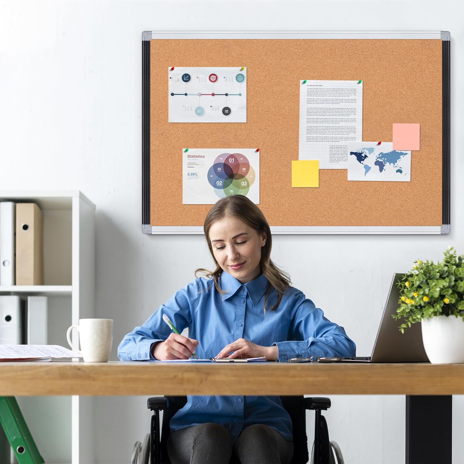 - Light Weight: 36 inch cork board with 18 push pins, The frame is surrounded by black/silver lightweight aluminum, covered with four ABS plastic corners, lightweight and sturdy, guaranteed not to warp, more beautiful and fashionable, ideal for home or office