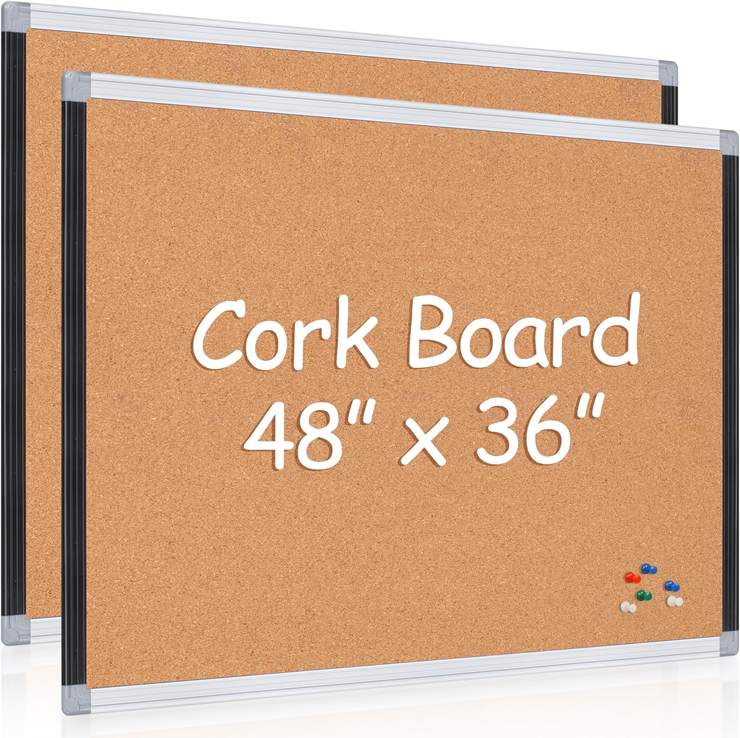 Board2by 2 Pack Cork Bulletin Board 36" x 48", Black/Sliver Aluminium Framed Corkboard, Office Board for Wall Decor, Large Wall Mounted Notice Pin Board with 36 Push Pins for School, Home & Office