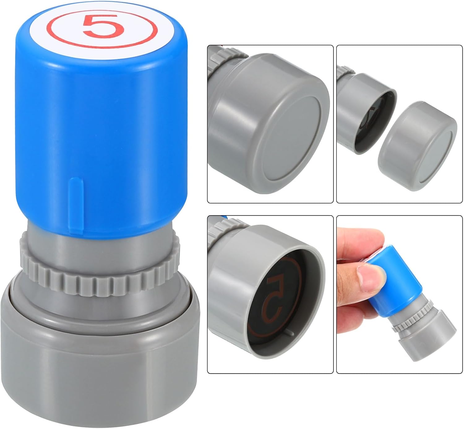- Ink Color: Red; Shell Color: Blue; Pattern: Digital 5; Material: Plastic; Character Size: 20mm / 0.8 inch; Overall Size: 34 x 63mm / 1.3 x 2.5 inch(D*H); Packing List: 1 x Number Learning Stamp, 1 x Ink
