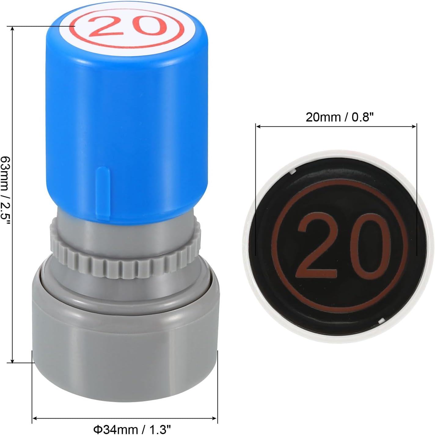 - Ink Color: Red; Shell Color: Blue; Pattern: Digital 20; Material: Plastic; Character Size: 20mm / 0.8 inch; Overall Size: 34 x 63mm / 1.3 x 2.5 inch(D*H); Packing List: 1 x Number Learning Stamp, 1 x Ink