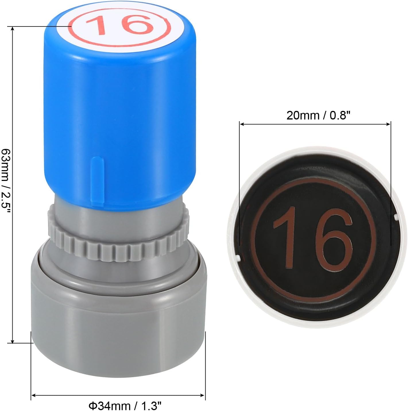 - Ink Color: Red; Shell Color: Blue; Pattern: Digital 16; Material: Plastic; Character Size: 20mm / 0.8 inch; Overall Size: 34 x 63mm / 1.3 x 2.5 inch(D*H); Packing List: 1 x Number Learning Stamp, 1 x Ink