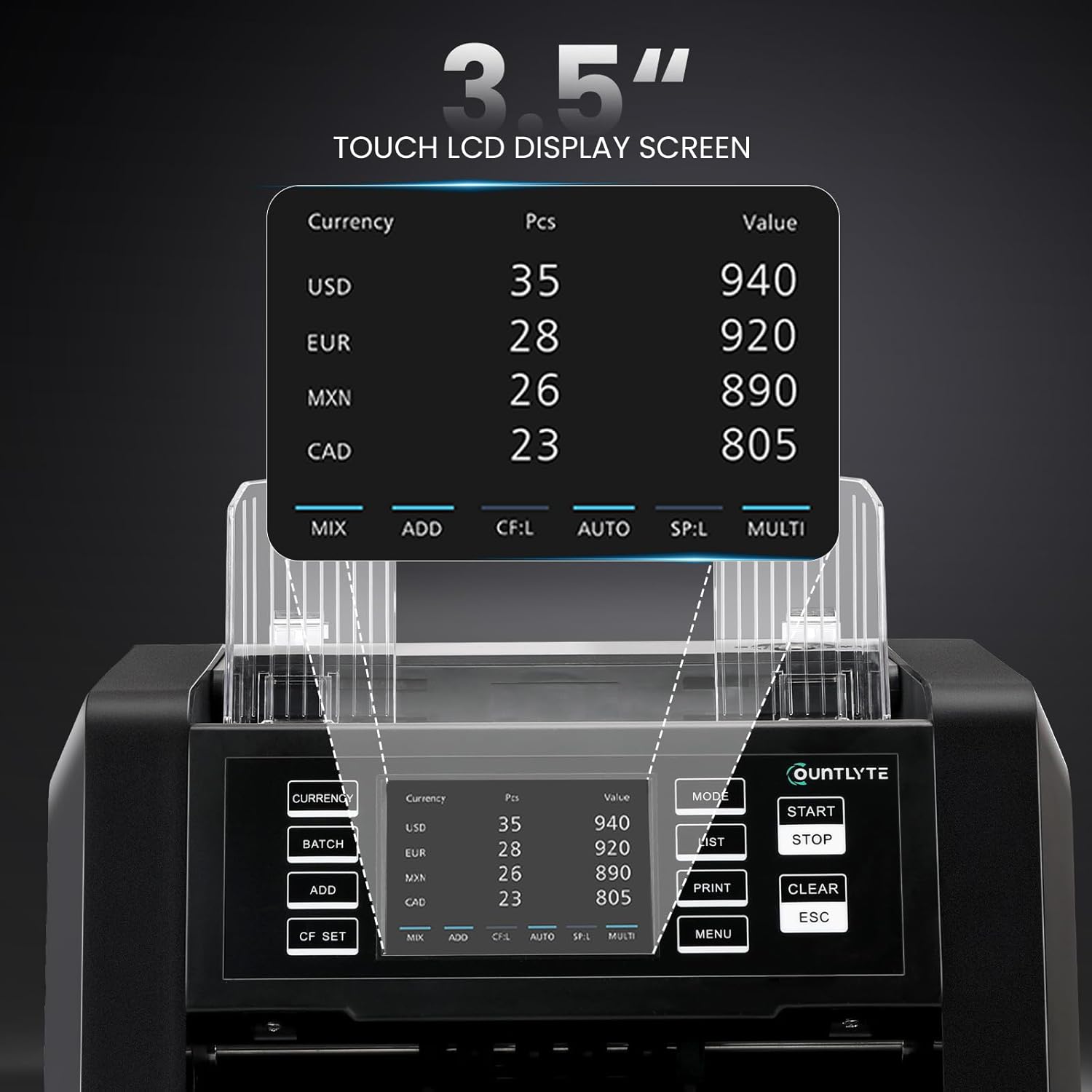 - 20 Currency Multiple Working Modes: Designed for North & South American markets and supports multi-currency value counting of 20 currencies such as USD, EURO, CAD, MXN, Peru .etc. Works under different counting modes to meet your demand: SORT, MIX, Auto currency detect, Multi Currency Mix Count, ADD, BATCH, Serial number record. Ideal for currency exchange shop, enterprise, banks, all kinds of stores