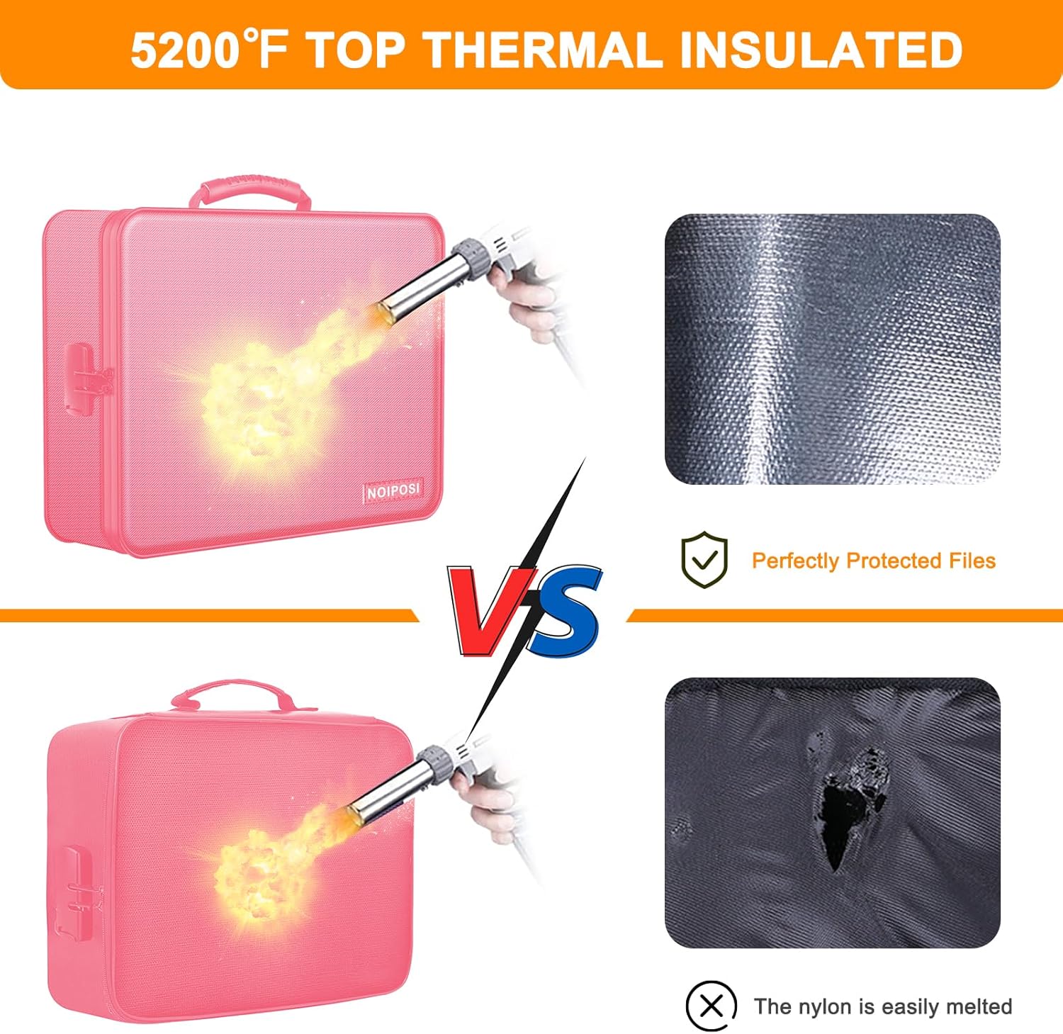 Noiposi Document Organizer with 5200℉ Heat Insulated,Waterproof and Fireproof Document Box,Portable Home Travel Safe Storage Box for Important Documents,File and Birth Certificate,Pink