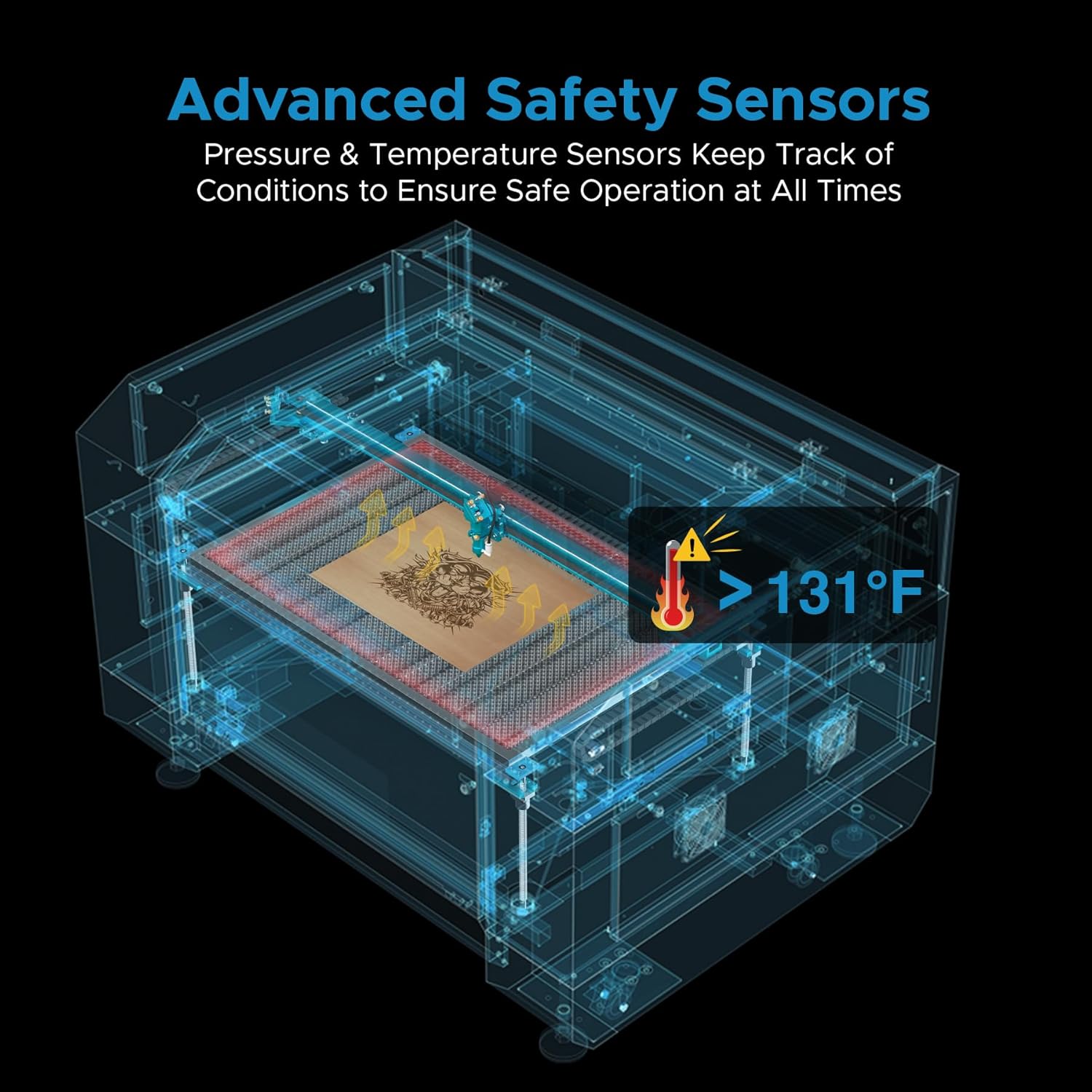 - Stay Safe & Clean: Our advanced sensors monitor air pressure and temperature, pausing operation if needed, while the powerful air pump and 318 cfm turbo exhaust fan keep dust and debris in check for a tidy workspace