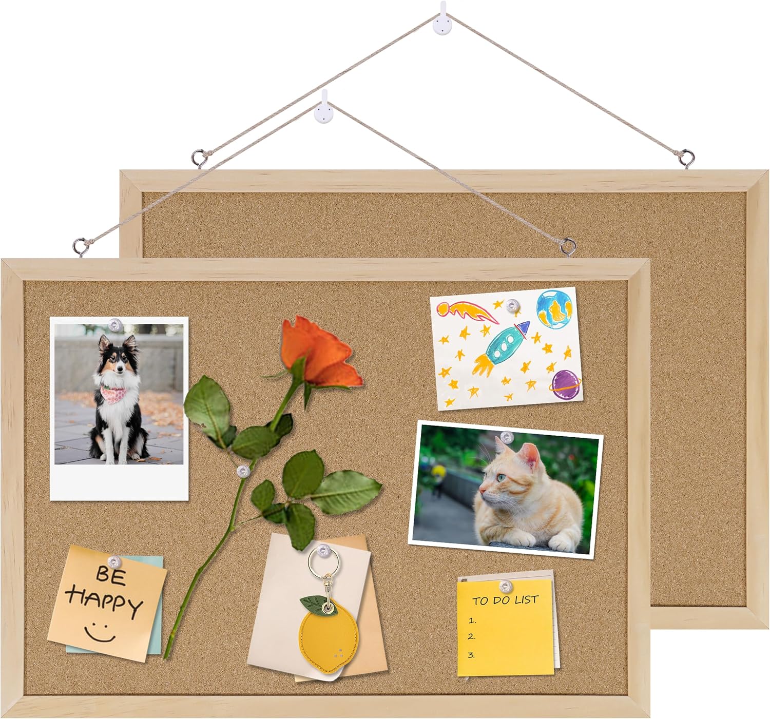 Cork Board Bulletin Board 2 Pack,17"X12" Cork Board for Office with Pin Oak Wood Boards,Hanging Corkboards for Office Home School Message Board or Vision Board Decoration