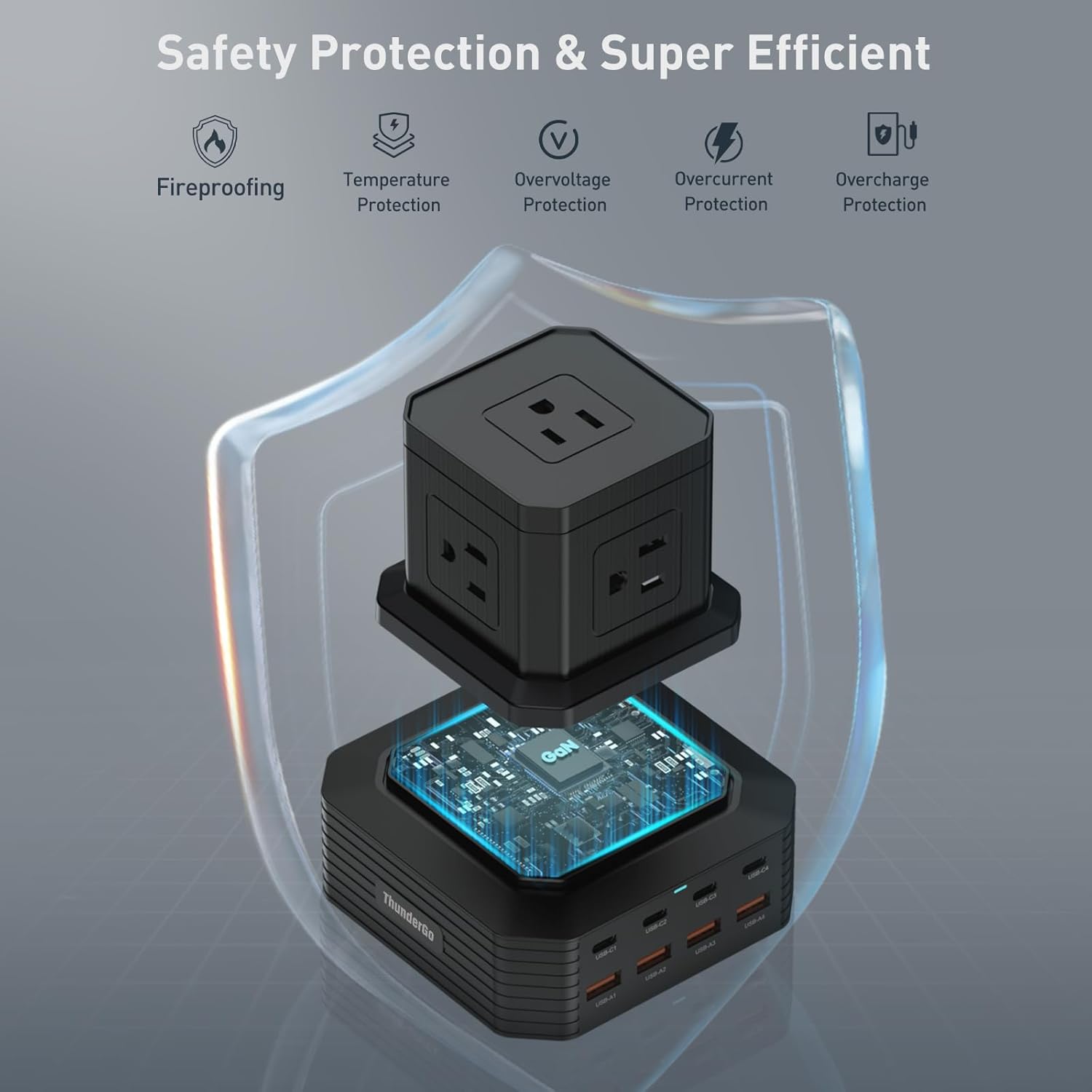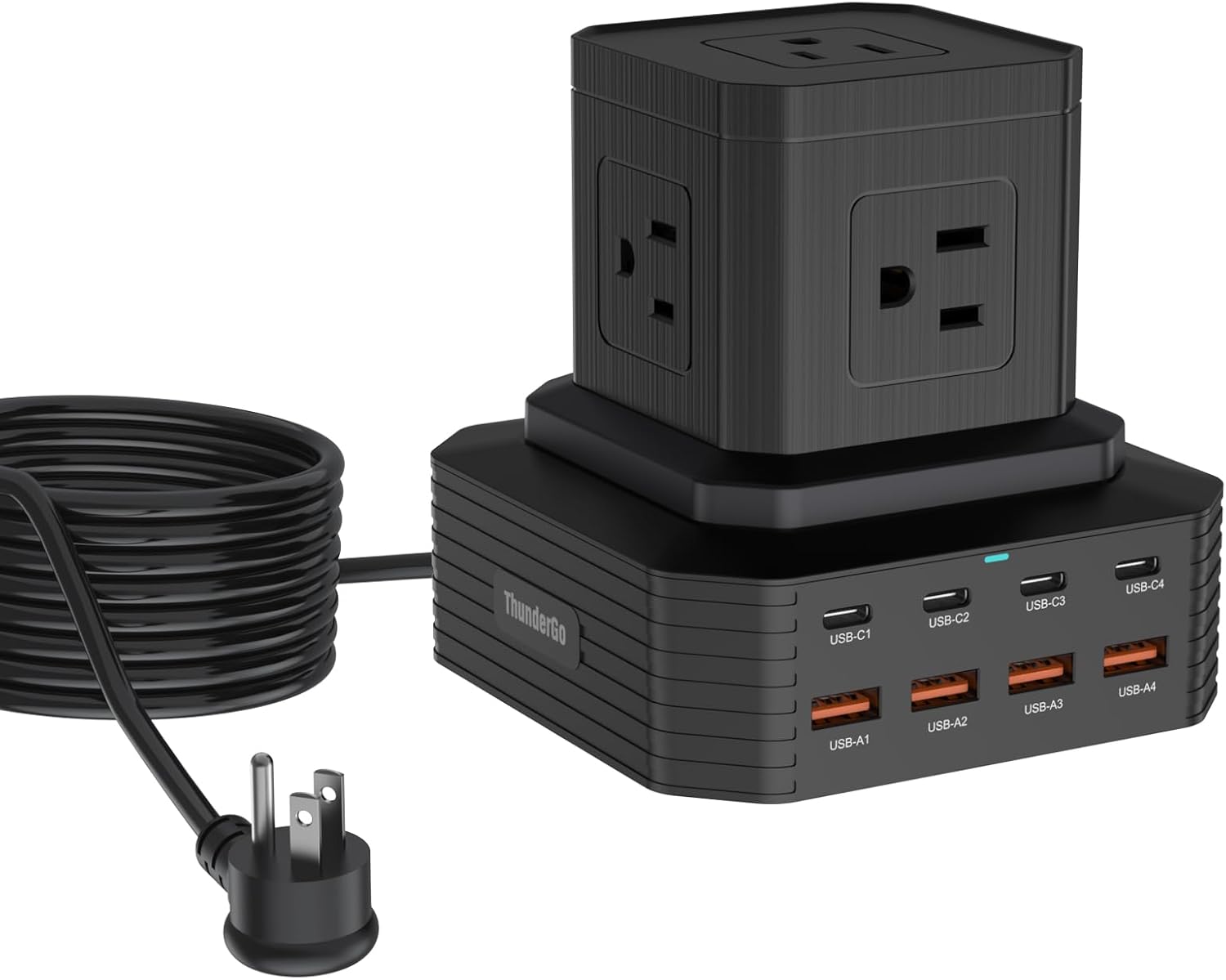 - 【13-Port Smart Power Hub】5 AC outlets+4 USB-C Ports+4 USB-A Ports Charging Station Supply power for laptops, smart phones and tablet PCs. Total control switch fingertip can control the power supply, safe, effective, convenient and comfortable. Meet the requirements of high-power wire, the resistance is smaller, the load is reduced, and the conduction is safer, has a unique appearance design. Universal AC input voltage from 110V to 220V,automatic switching,just plug & go