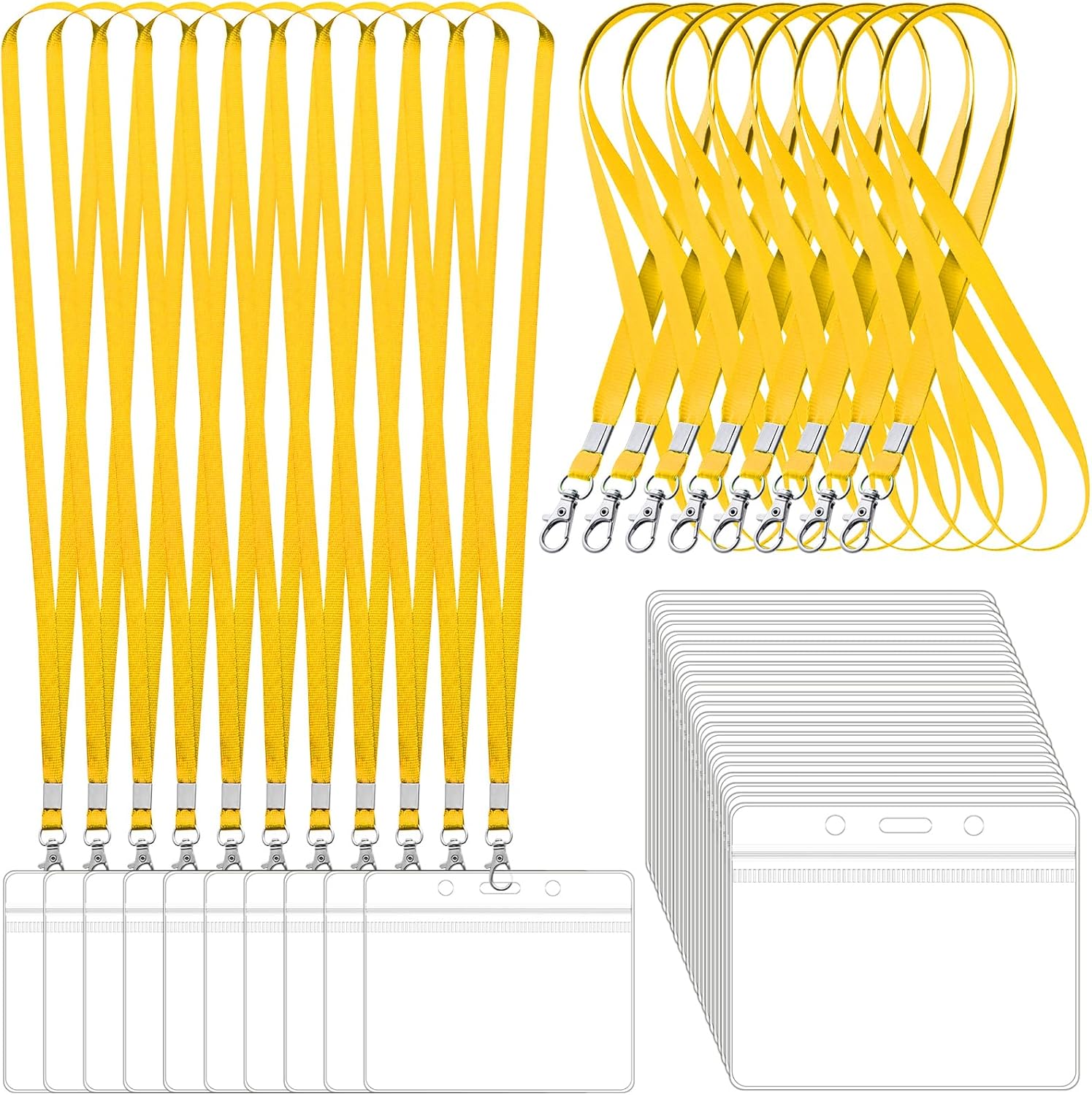 100 Pack Lanyards for ID Badges with Clear Name Tags, Reusable Lanyards Horizontal ID Card Badge Holders Plastic Name Badges for Men Women Kids Business School and Office Supplies (Yellow)