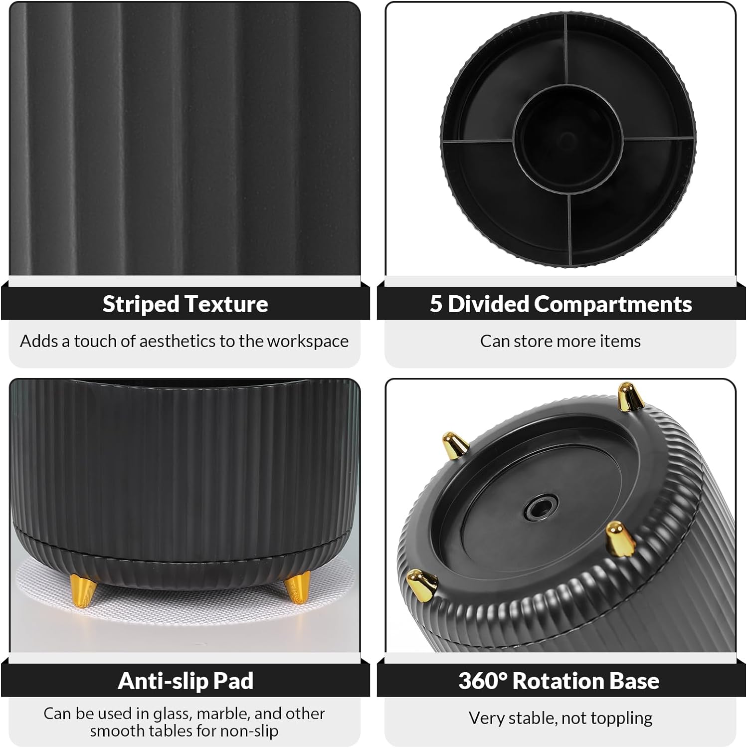- Rotating Pen Holder: This pencil and pen holder combo offers a 360 degrees rotation feature, ensuring easy access to your writing tools, and making it even more convenient to find what you need