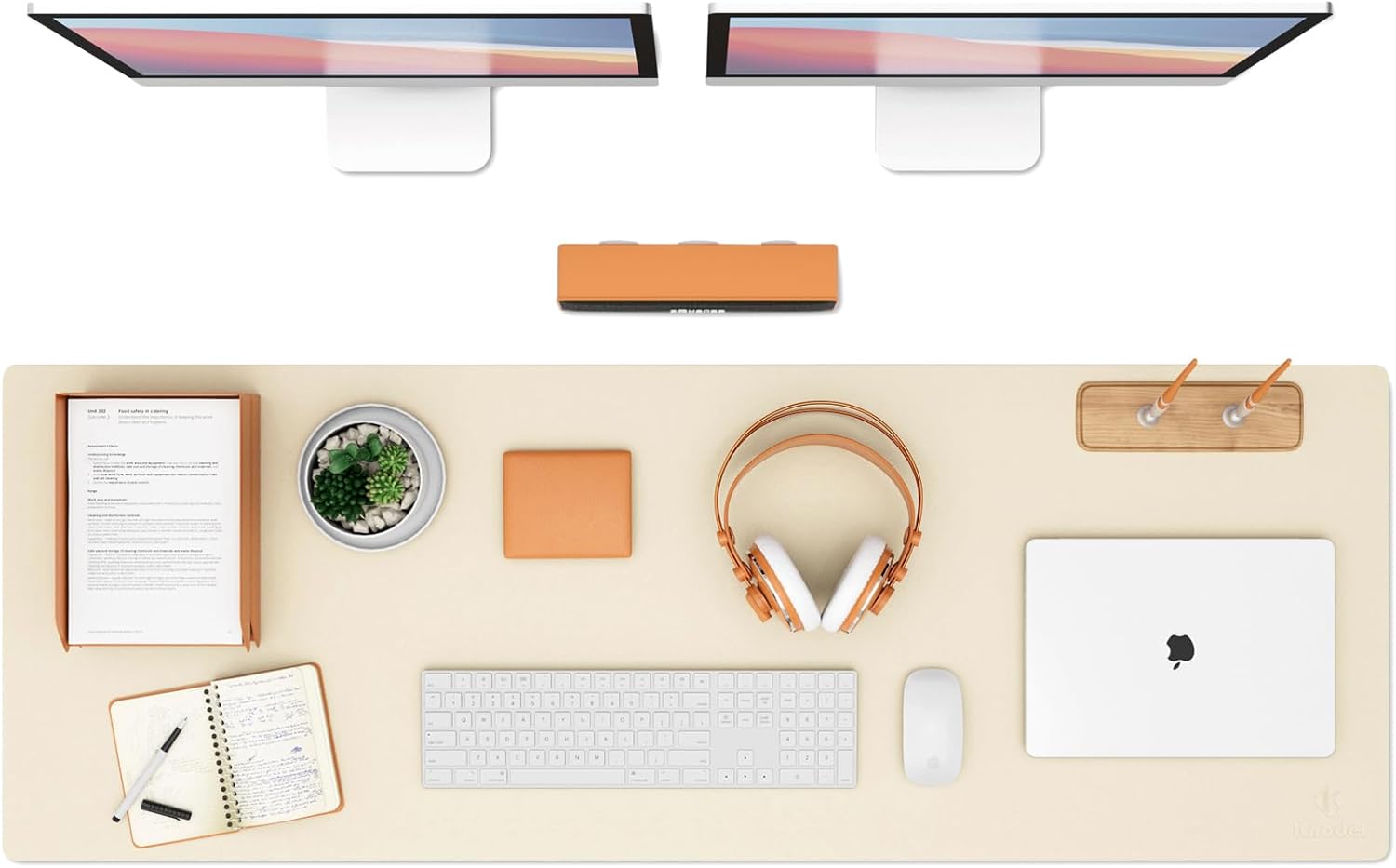 K KNODEL Large Office Leather Desk Mat, Mouse and Keyboard Pad, Computer and Laptop Mat, Desktop Protector and Cover, Writing Pad and Blotter (47.2"x17", Ivory Cream)