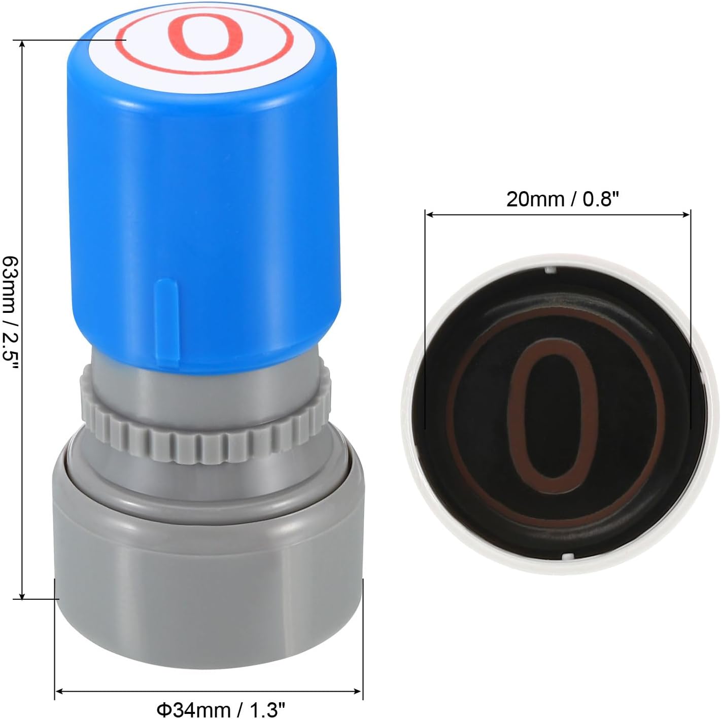 - Ink Color: Red; Shell Color: Blue; Pattern: Digital 0; Material: Plastic; Character Size: 20mm / 0.8 inch; Overall Size: 34 x 63mm / 1.3 x 2.5 inch(D*H); Packing List: 1 x Number Learning Stamp, 1 x Ink