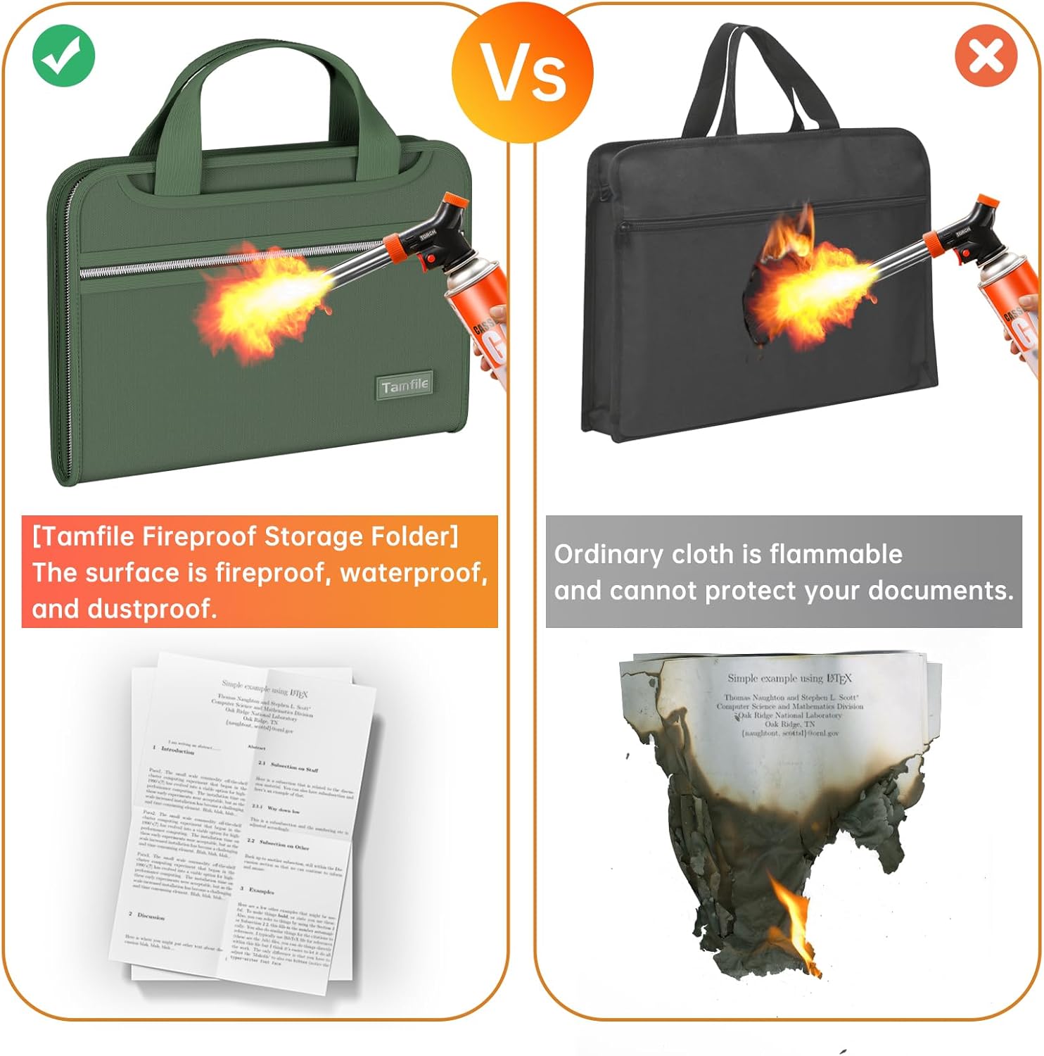 - [Tamfile Fireproof Storage Folder] The surface is fireproof, waterproof, and dustproof. The folder surface is made of fireproof and waterproof upgraded silicone fiberglass fabric, which can withstand temperatures up to 2200°F and has passed SGS testing (UL94 certification). File folders protect valuable items and information. Save and organize your valuable materials, artifacts, important documents, office supplies, and more with our advanced fireproof multipurpose folders.