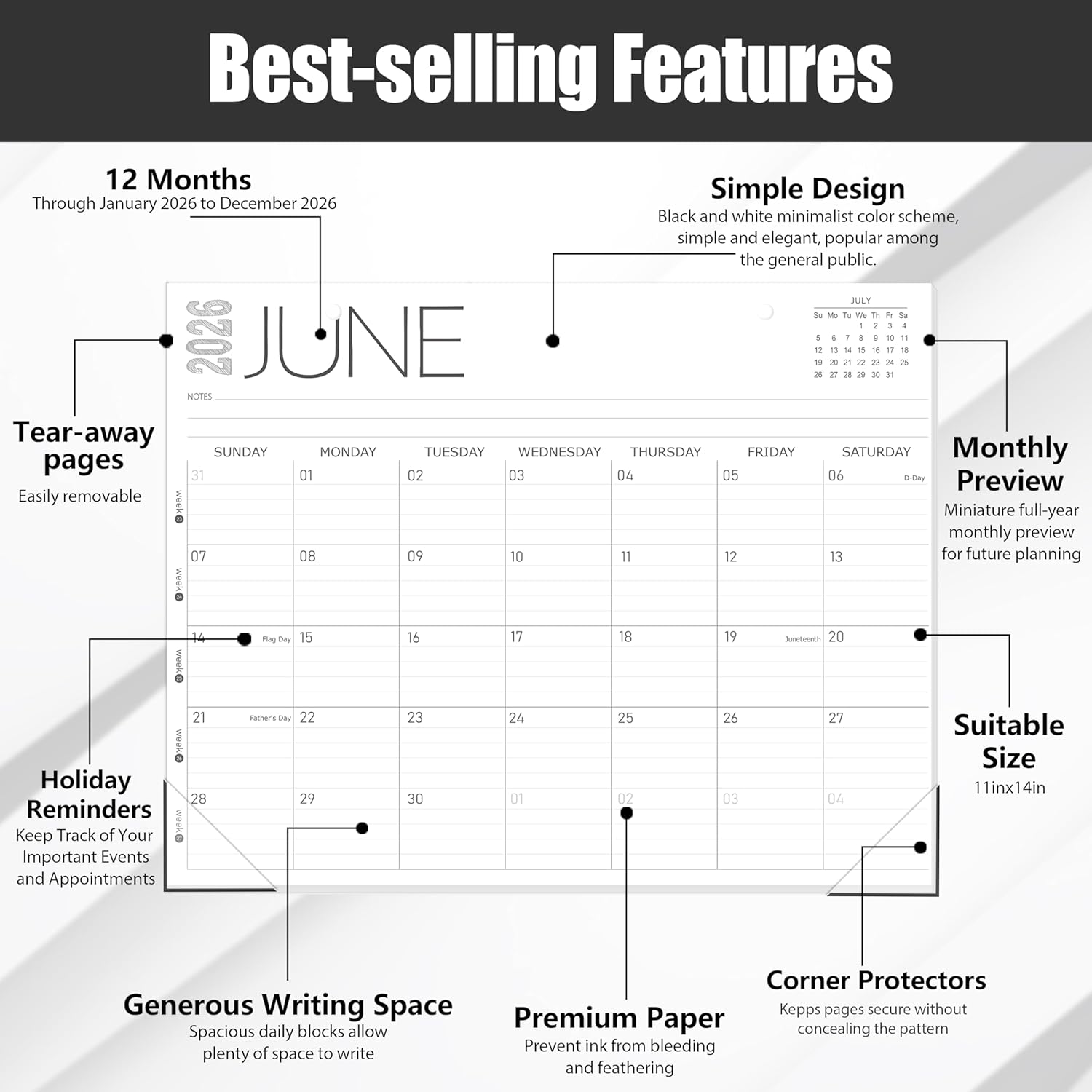- Say Hello to Your New Desk Sized Calendar: Our academic calendar 2026 is sized just right at 14 inches x 11 inches, so it's big enough to handle all your plans but small enough to slide right onto your desk or hang on your wall. Plus, convenient preview of last months and next month displayed at every page, it's the ultimate desk accessory for staying on top of your school life