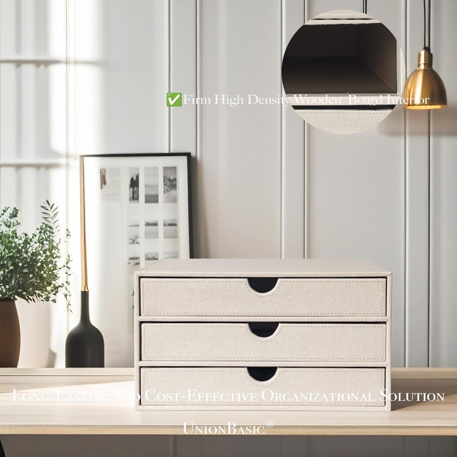 UnionBasic Document Organizer, 3-Drawer File Cabinet Document Storage Box, Office Desktop Filing Organizer, Beige