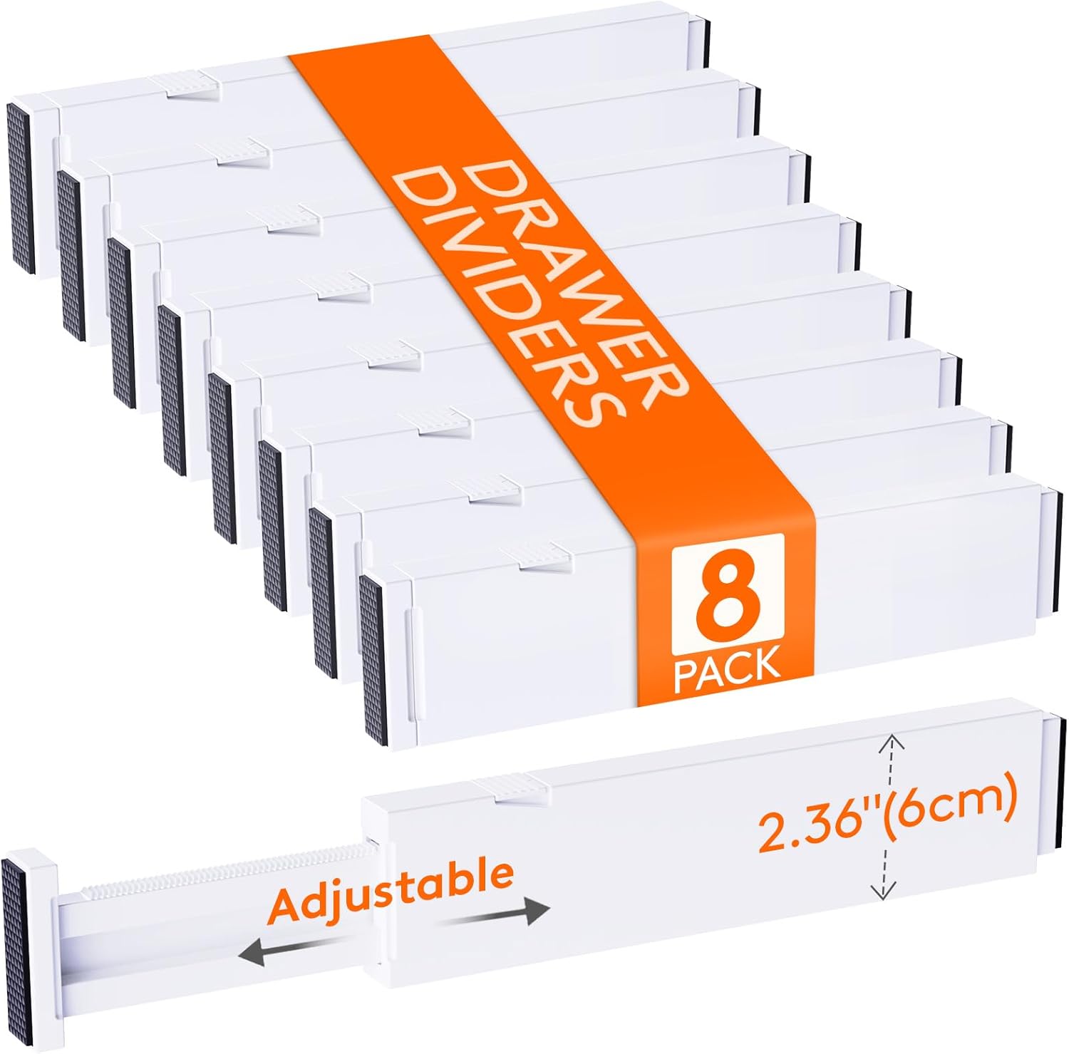 - Expandable and Adjustable: With a width of 0.8 inches, a height of 2.36 inches, and an adjustable length ranging from 11 to 17 inches, our drawer dividers fit most drawers and cabinets, keeping your items organized and drawers tidy