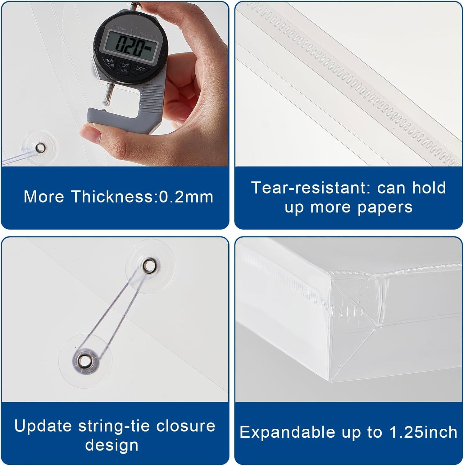 - 【Clear File Folder Size】 You will get 10pcs poly envelopes with string closure, size: 9.6 x 13 x 1.2inch/328 x 245 x 3mm, thickness: real 20c/0.2mm. Perfect for US letter/A4 size paper and other small items storage.
