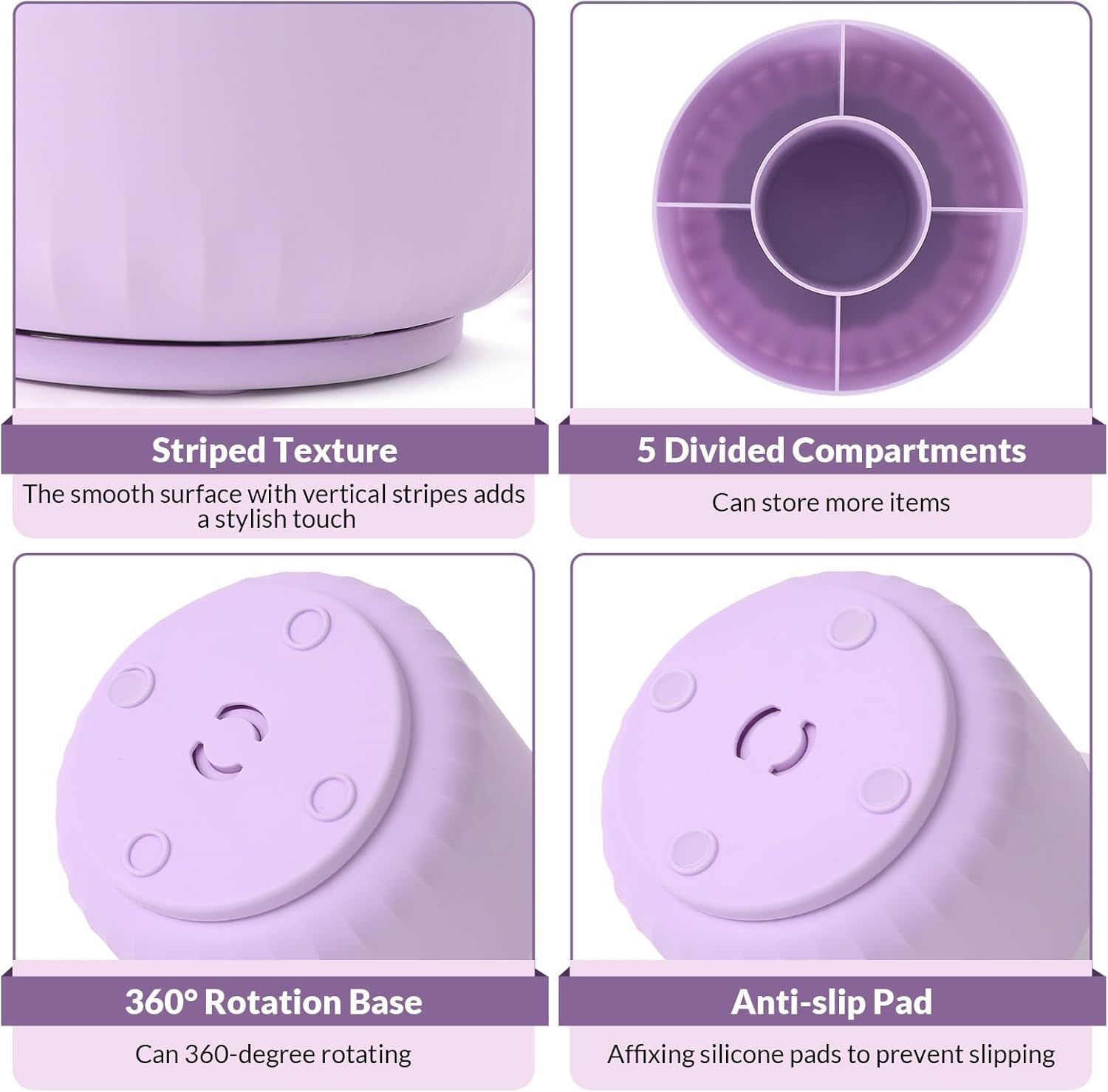 SKYDUE 360 Degree Rotating Desk Organizer, Dual-Purpose Pencil Pen Holder for Desktop, Rotating Desk Pen Organizer with 5 Slots Purple
