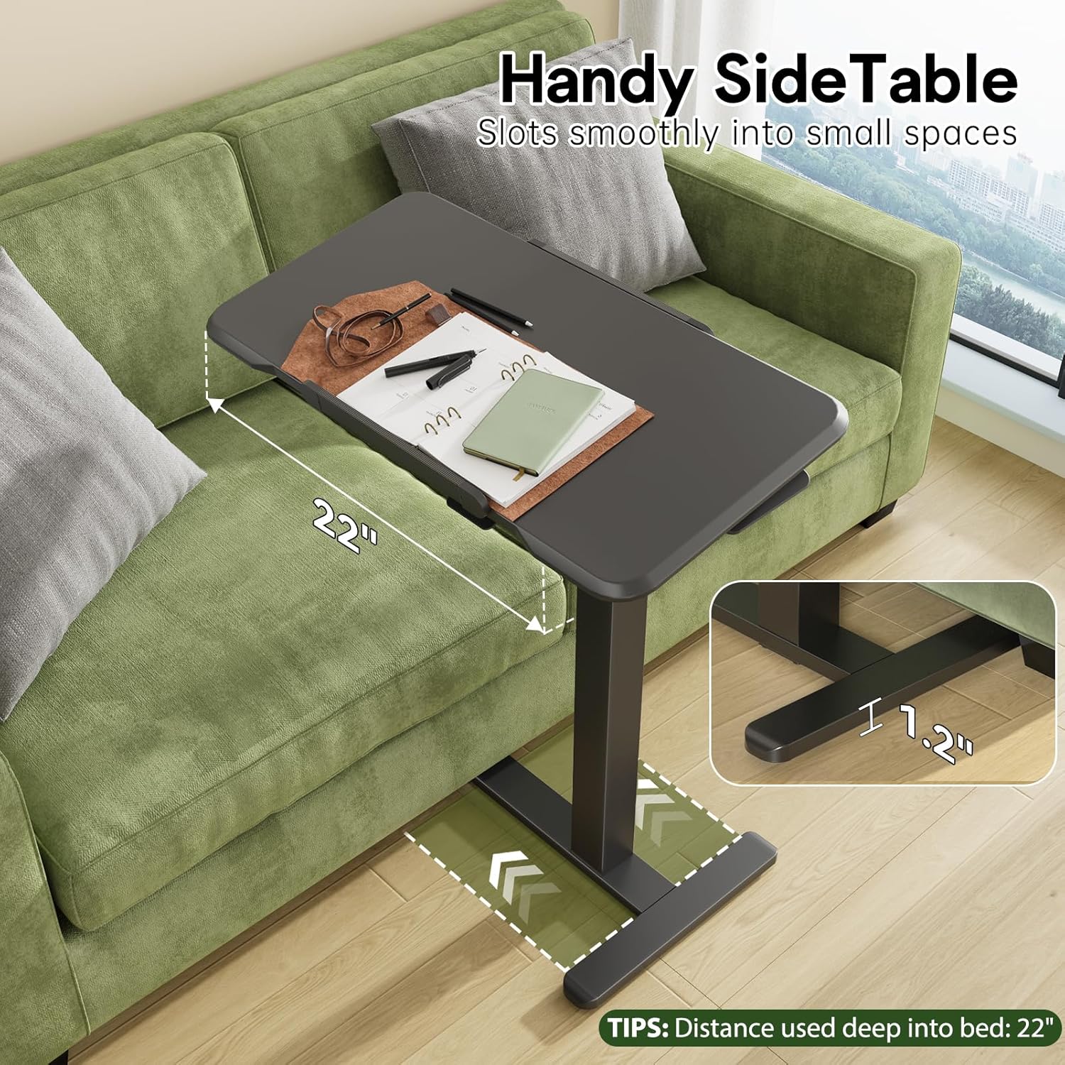- Height Adjsutment: The height of rolling computer desk can be adjusted from 27.2" to 41.3" with smooth one-button lifting. The bedside table built-in gas spring is easy to switch between sitting and standing positions