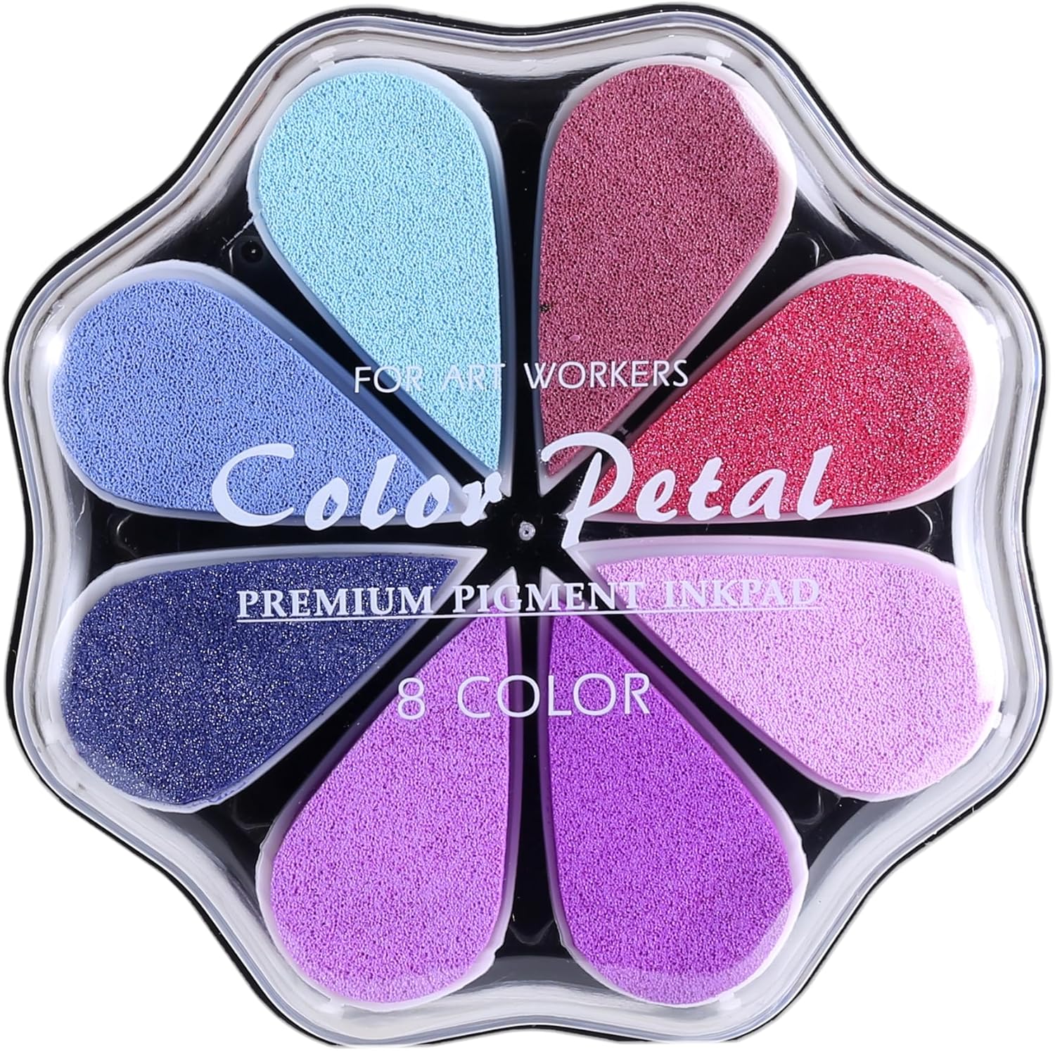 YPSelected 8 Assorted Multi Colours Waterdrop Shaped Craft Rubber Stamps Petal Ink Pads for Paper Wood Fabric (Set 1029)