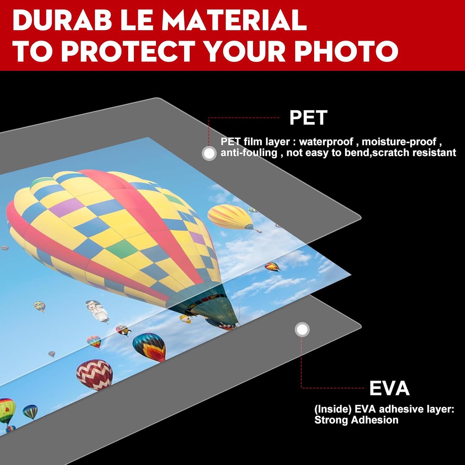 - Premium Material: Crystal clear, glossy sheen, sturdy and Premium material. Laceration resistant, double coating, anti-stain, sturdy and waterproof, protect your document from scratching