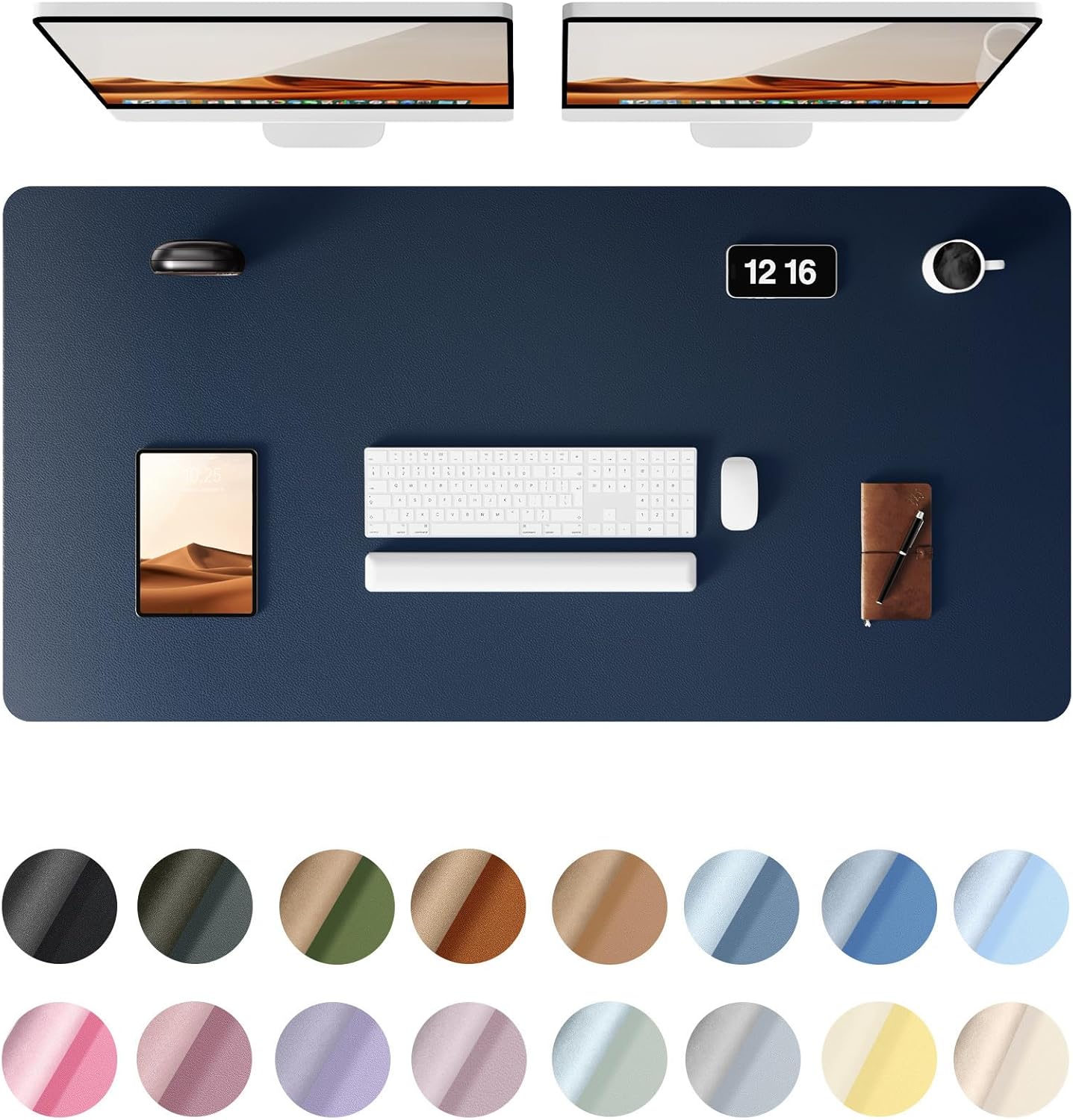 YSAGi Leather Desk Protector, Office Mat, Large Mouse Mat, Non-Slip PU Leather Blotter, Laptop Pad, Waterproof Writing Pad for Office and Home (Dark Blue, 47.2" x 23.6")