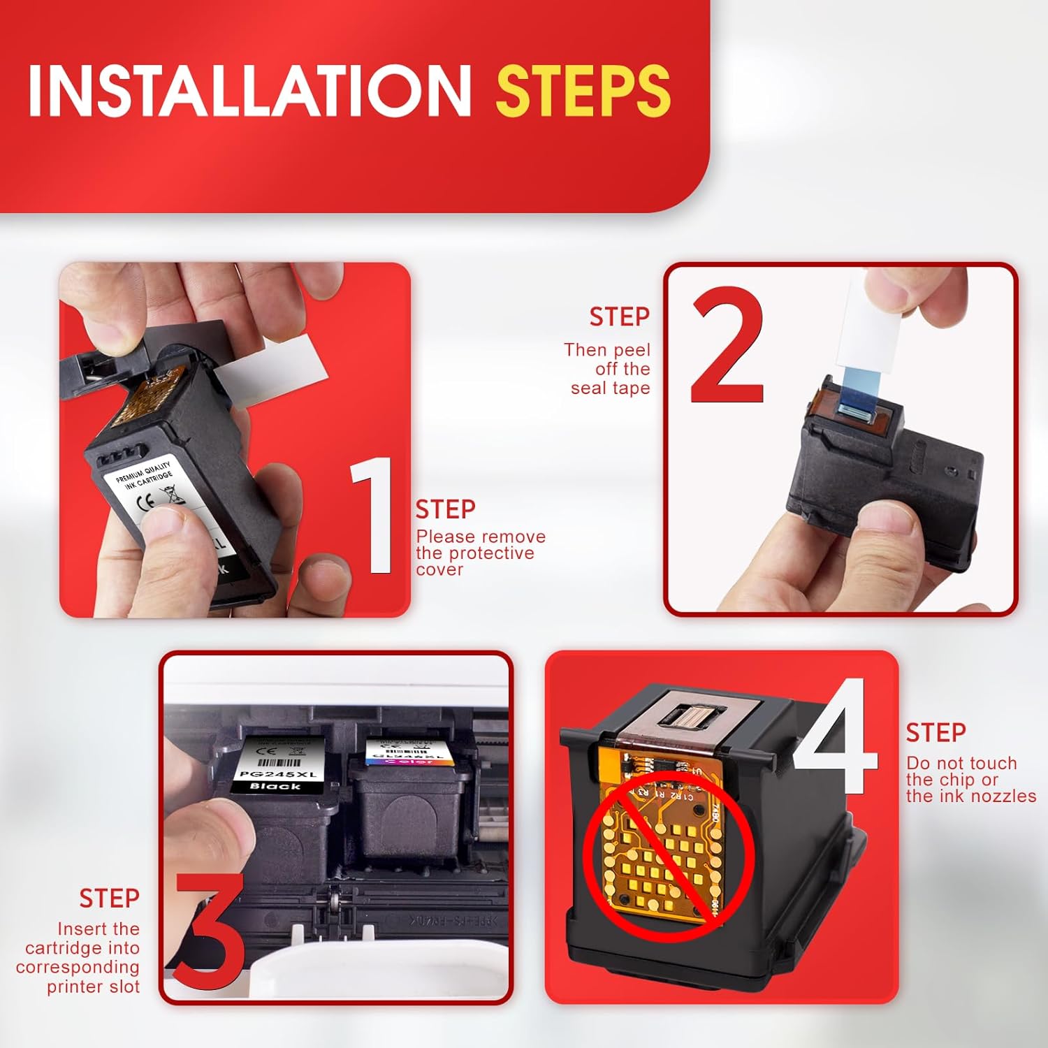 - Performance: For Canon Printer Ink 245 and 246 Combo Pack Is Equipped With A Smart Chip That Automatically Recognizes Your Printer.