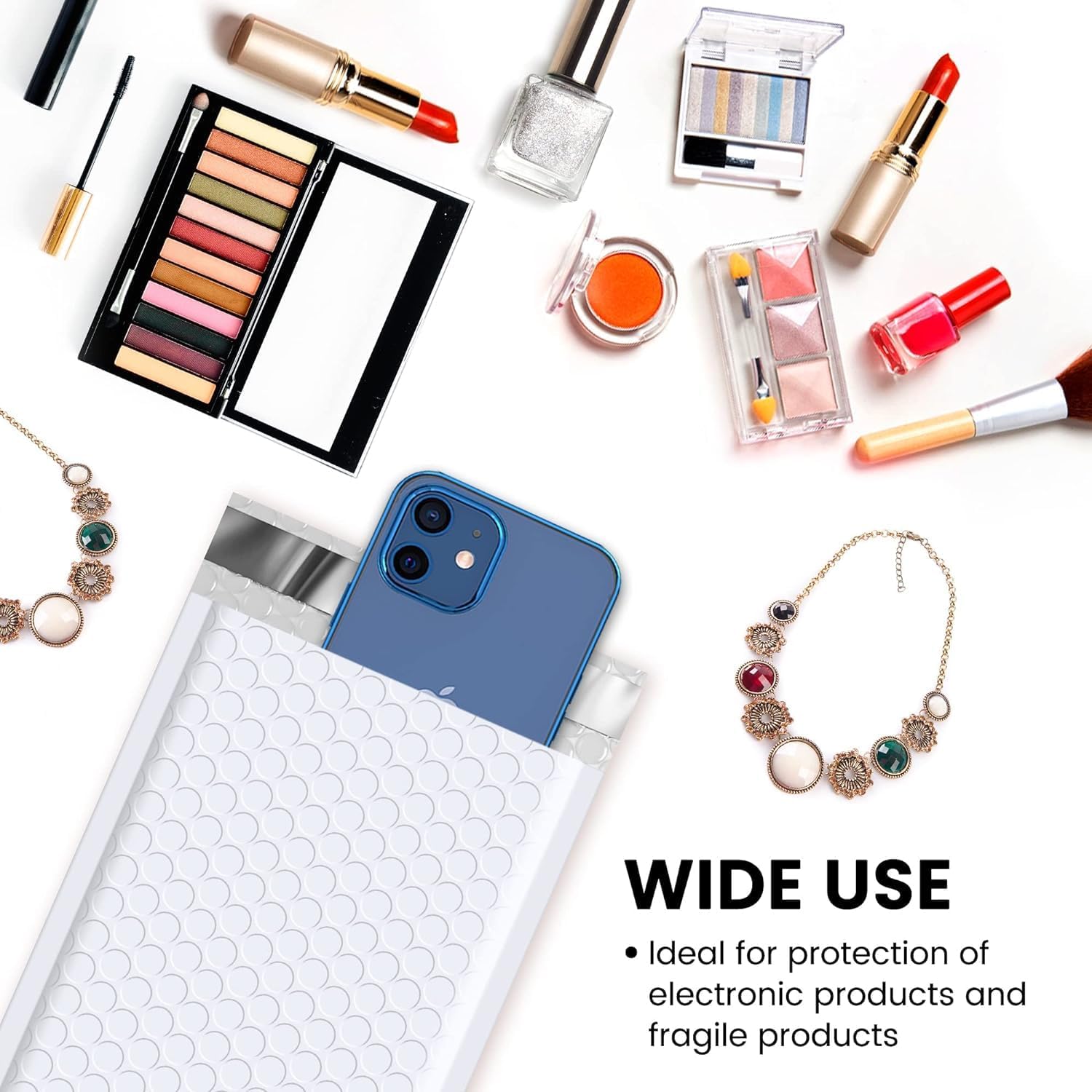 - Perfect Size White 000 Bubble Mailers: The small bubble mailers outer size is 4x8 inch, while the inner size is 4x7 inch. It is very suitable to transport for jewelry, makeup, cards, phone case, Lips, photos,handcraft and more.