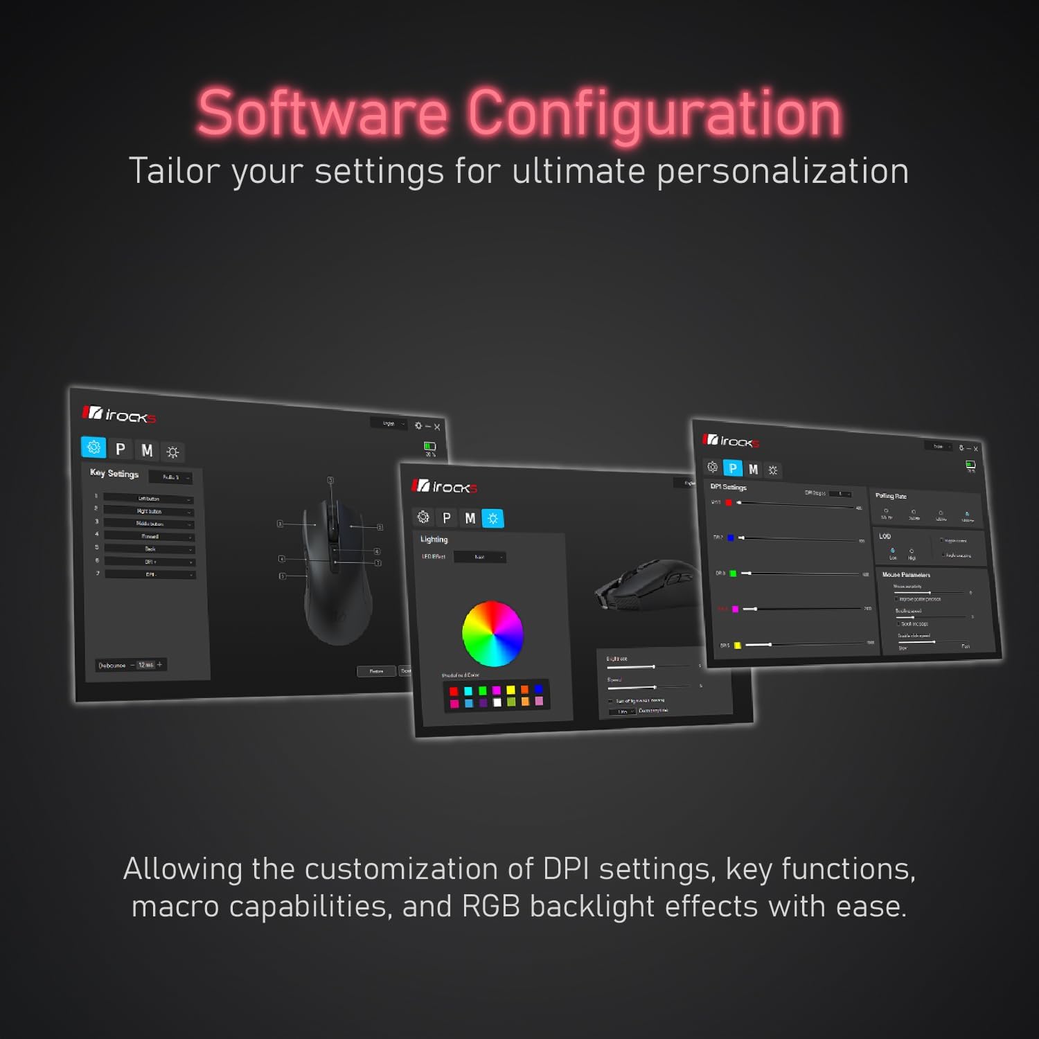 - Programmable Software⚡️ convenient for DPI adjustment, programmable key functions, and light switching. Also, combining onboard memory for customized settings on the go.