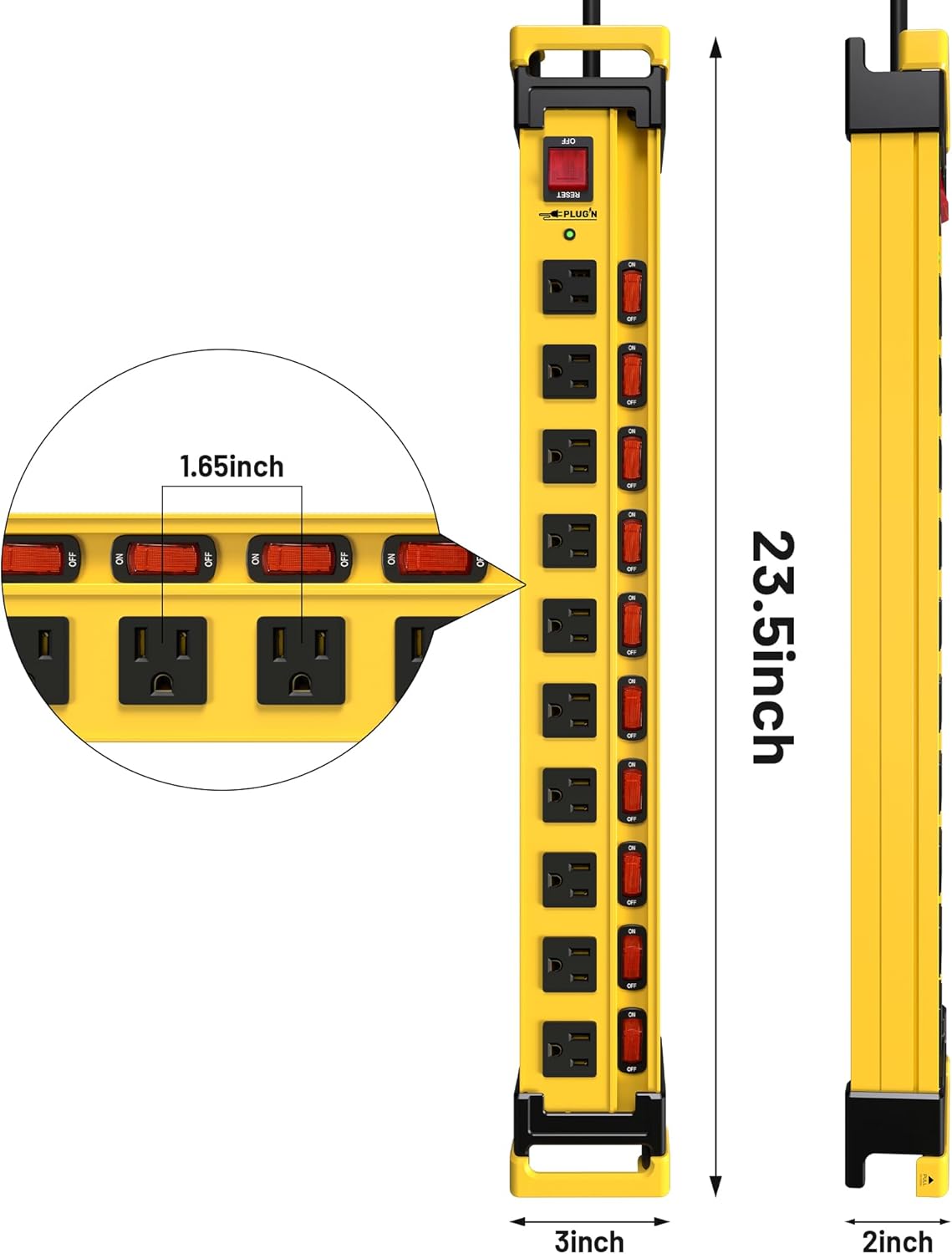 - Large Power Strip--AC 15A 125V 60HZ 1875W,Universal power strip is rugged and perfect for charging a wide range of power tools in workshop,garage,commercial,shop,home,kitchen,factory,workbench,industrial,under cabinet,warehouse and office