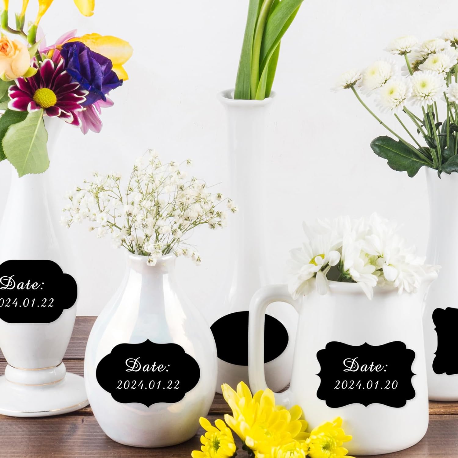 - Blackboard labels: A total of 200 waterproof and reusable blackboard labels, along with two white chalk marker, can be easily written and quickly dried. You can use it to hold bottles, parties, craft rooms, weddings, shops, and home kitchens.