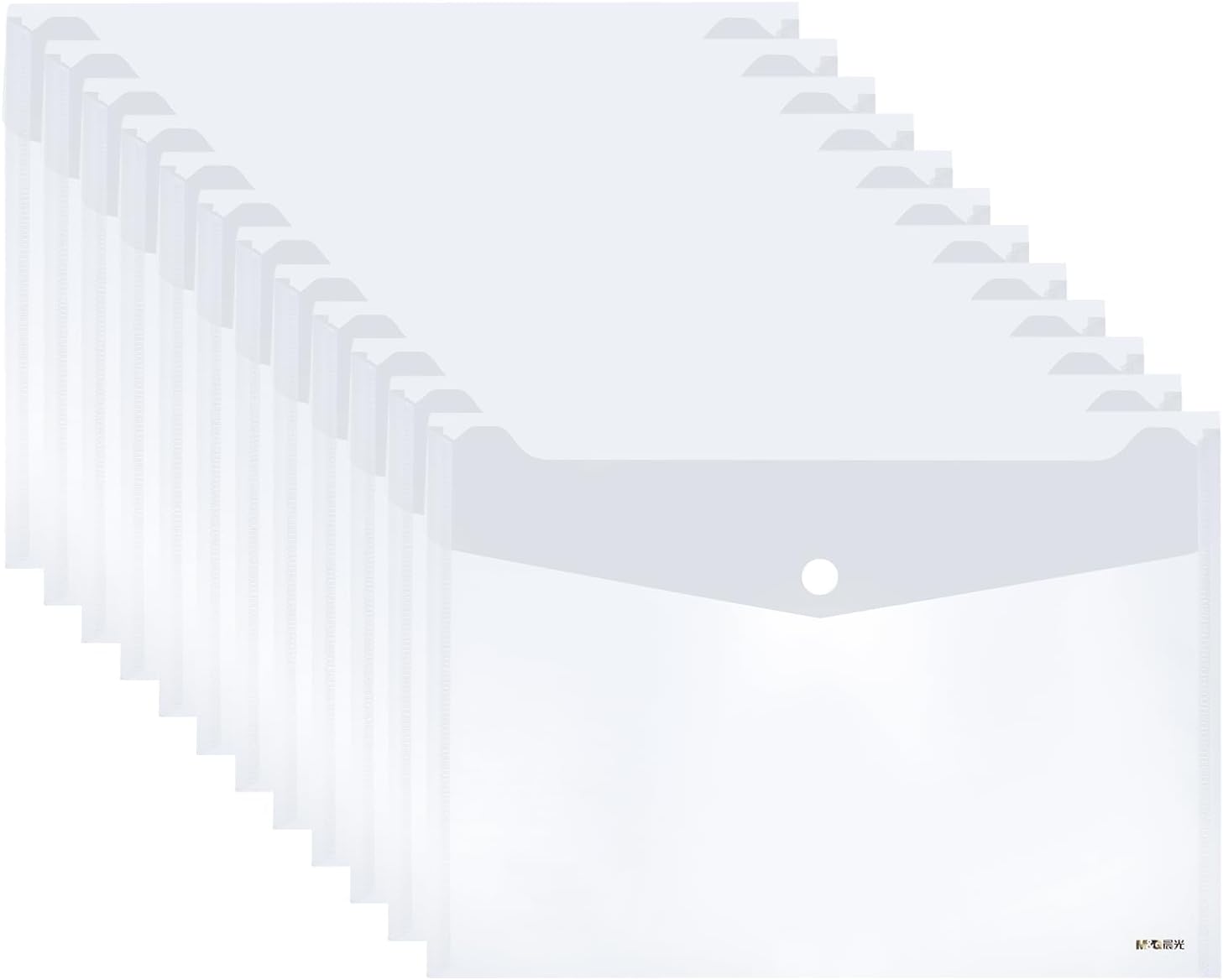 M&G 12 Pack Plastic Envelopes File Folders, Clear Folders for Documents A4 Letter Size Poly Envelopes with Snap Button Closure, Use for School Home Office Suppiles Organizer